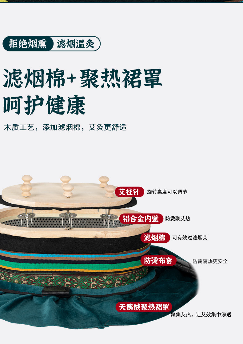温灸宝实木悬灸罐腰腹灸艾灸盒艾灸滤烟便携式熏灸仪器具全身批发