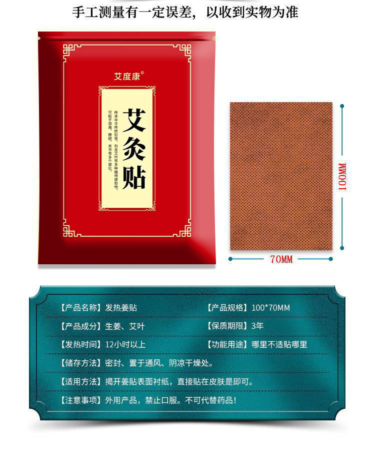 艾灸贴发热姜贴7*10大片姜贴 50贴大包装 现货 厂家批发发热贴