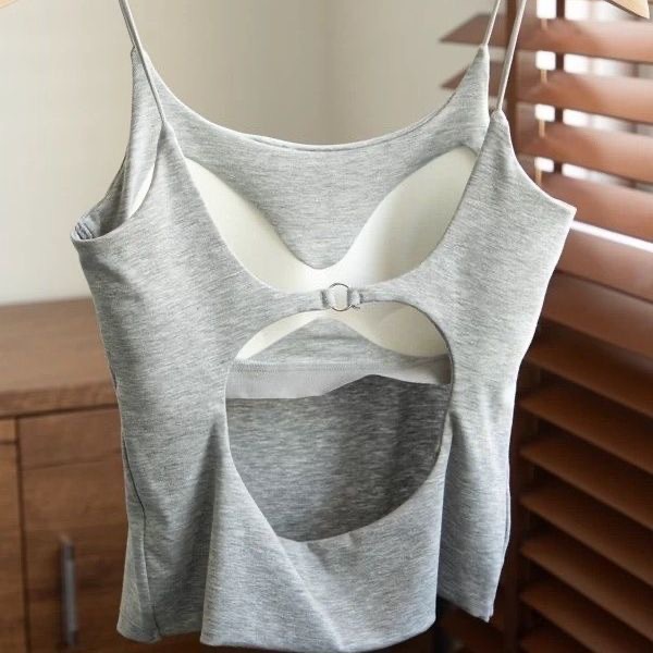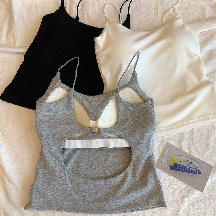 后背镂空小吊带背心女外穿内搭带胸垫美背文胸一体打底露背女上衣