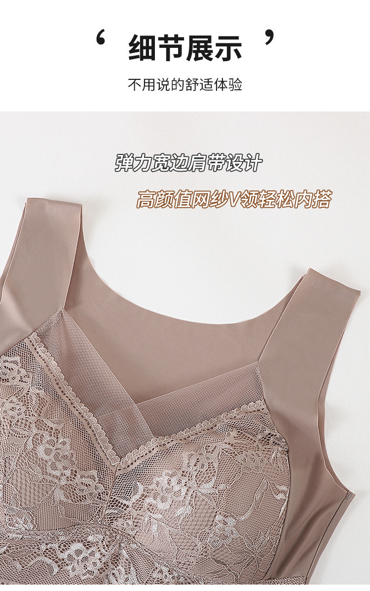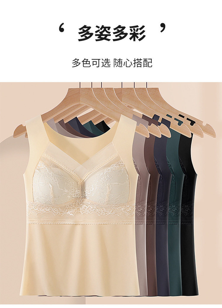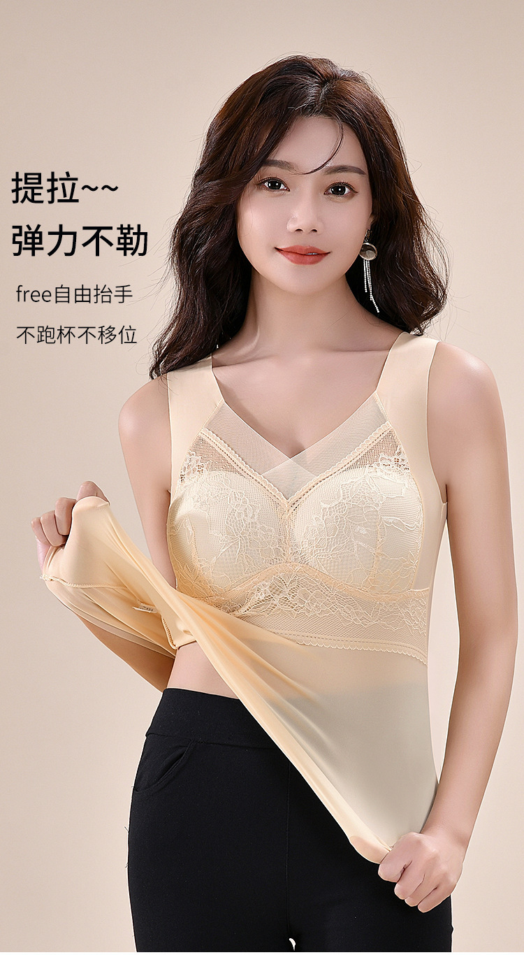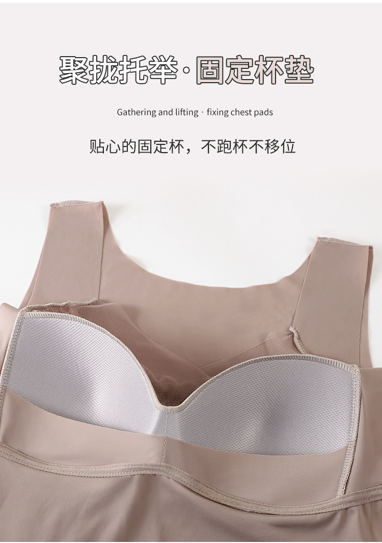 薄款冰丝一体式固定杯蕾丝吊带内衣女收副乳无痕外穿美背打底背心