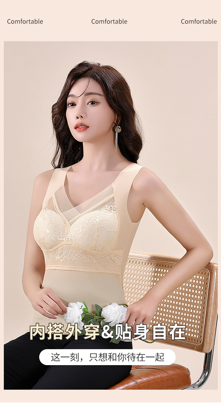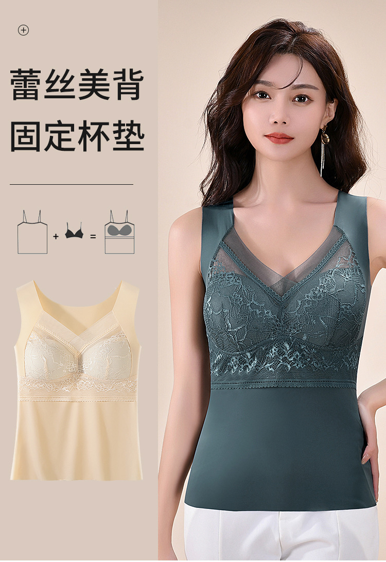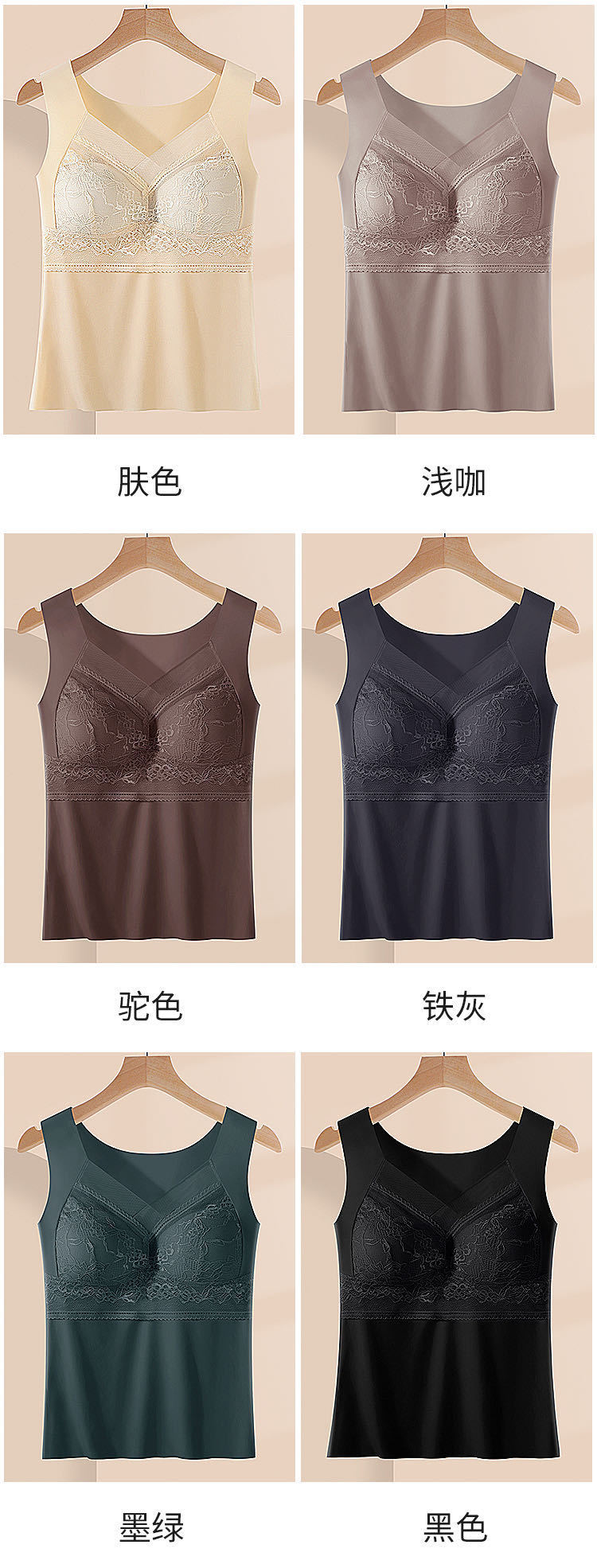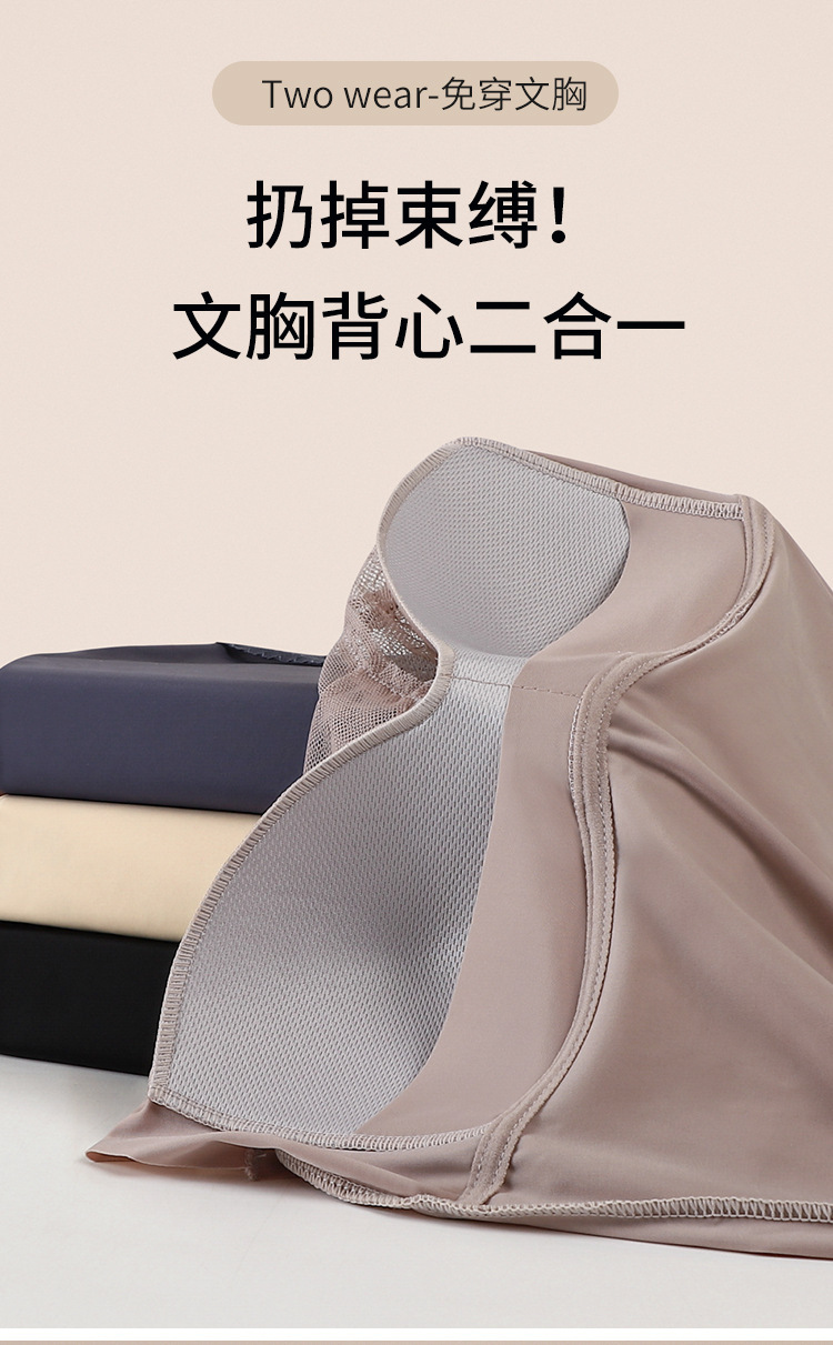 薄款冰丝一体式固定杯蕾丝吊带内衣女收副乳无痕外穿美背打底背心