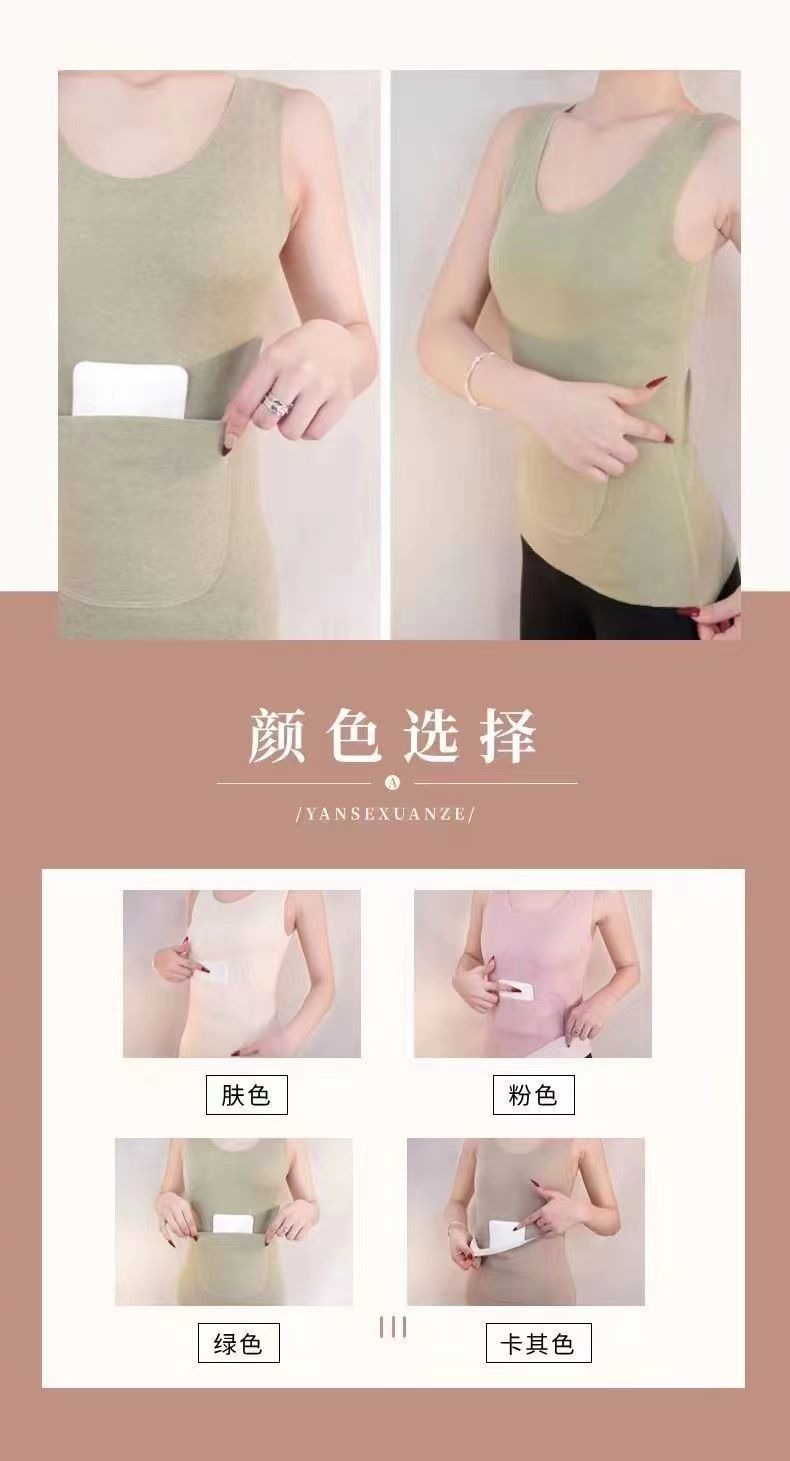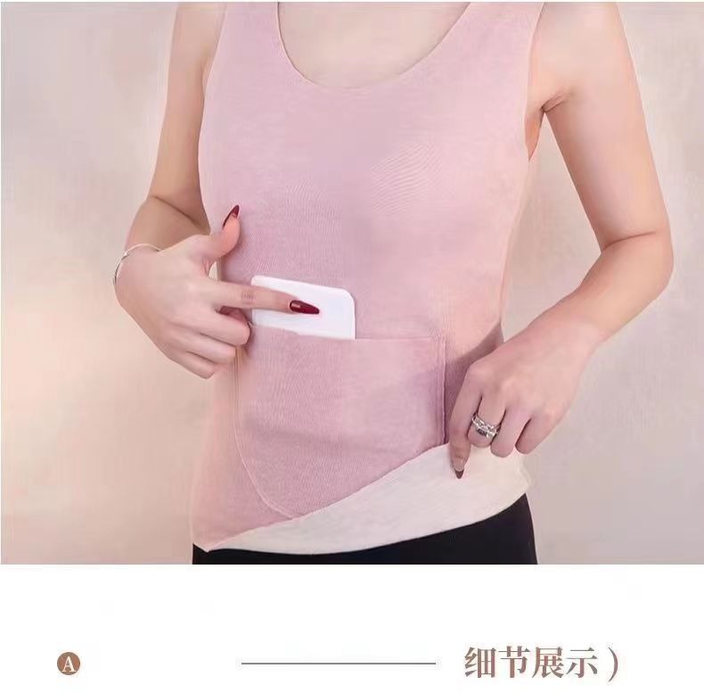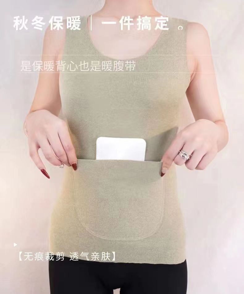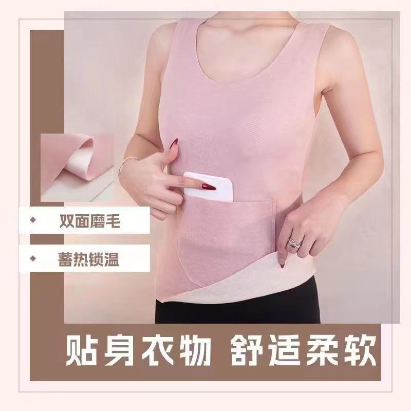 秋冬德绒磨毛保暖背心带双兜口袋护腰护肚打底修身保暖背心女上衣