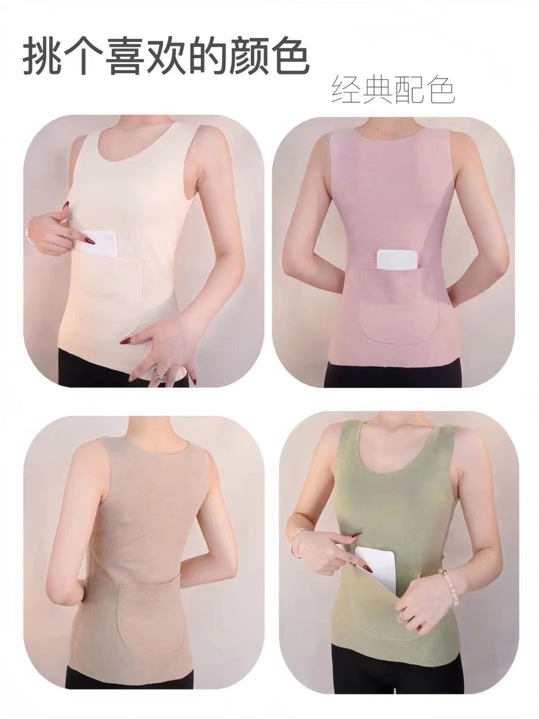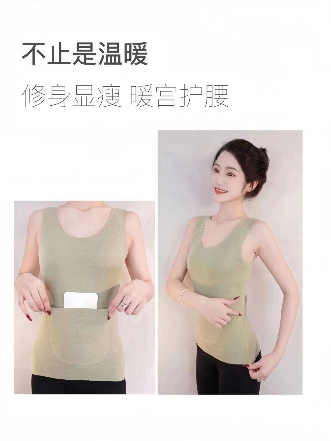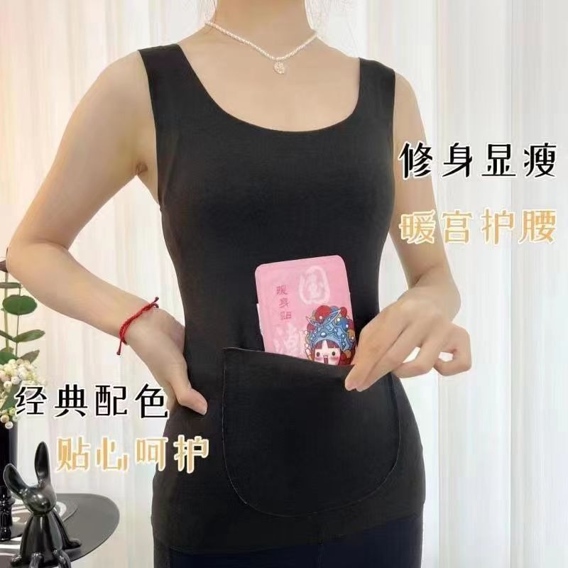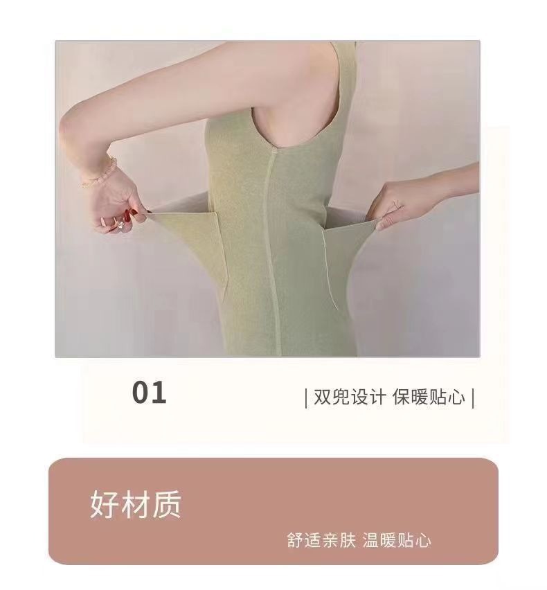 秋冬德绒磨毛保暖背心带双兜口袋护腰护肚打底修身保暖背心女上衣