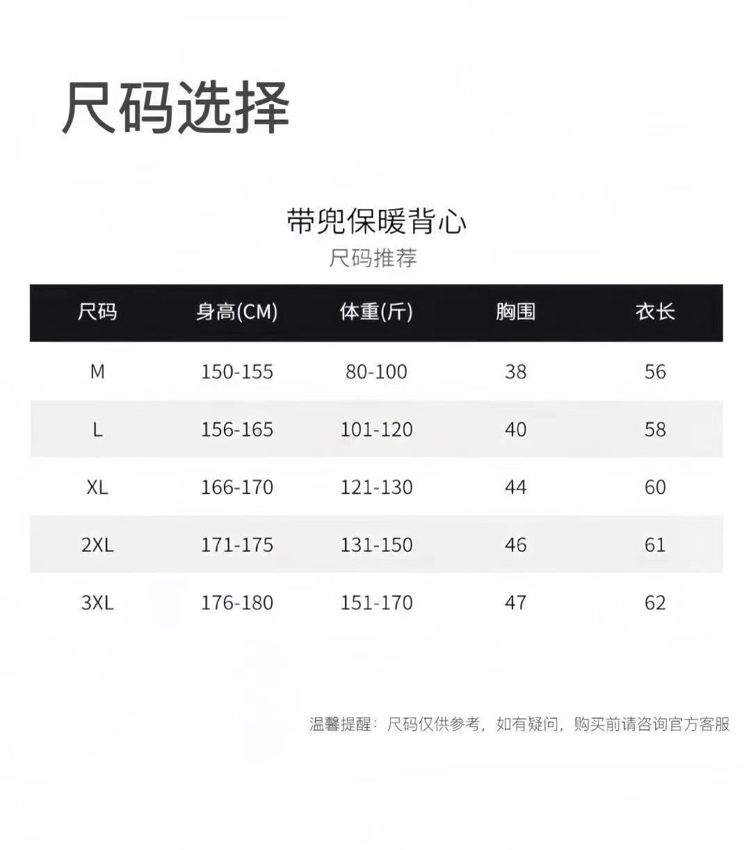 - 尺码:3XL【150-170斤】