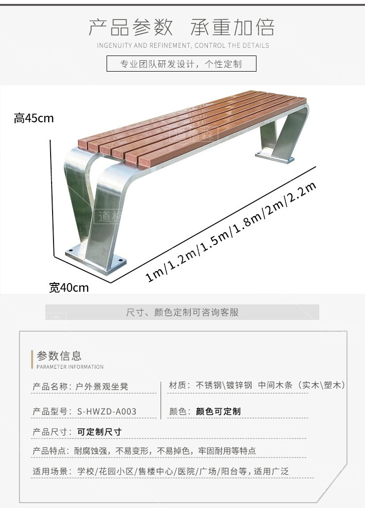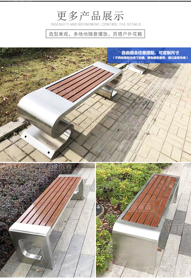 不锈钢长凳室外坐凳长条凳子长椅商场排椅靠背小区座椅户外公园椅