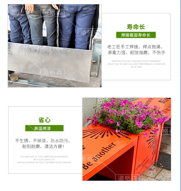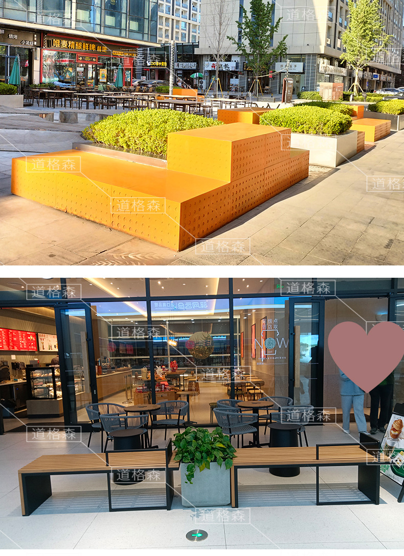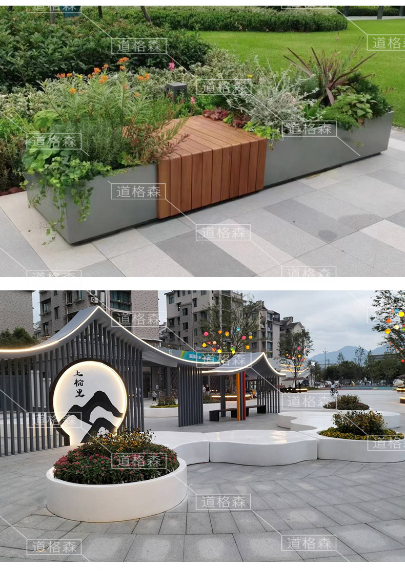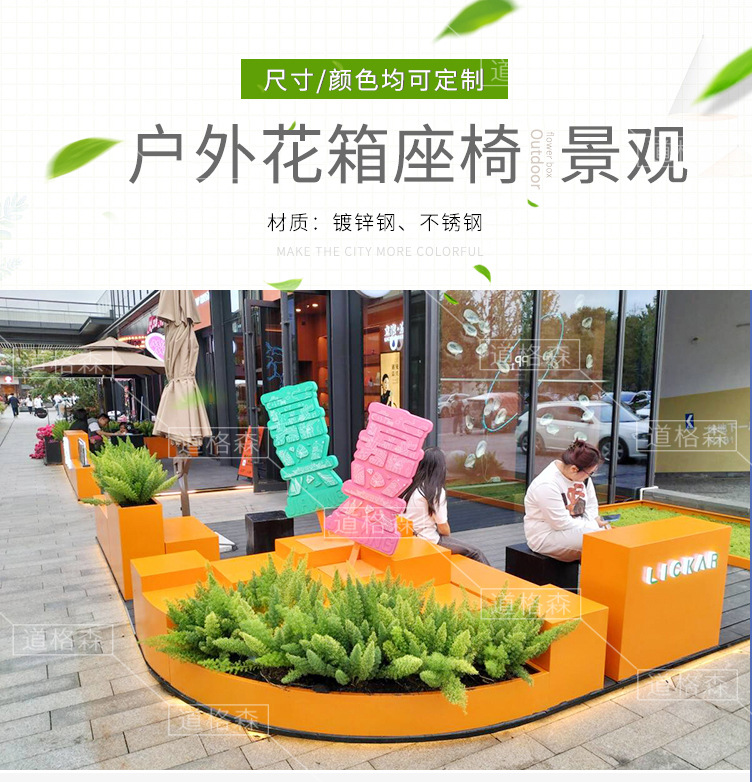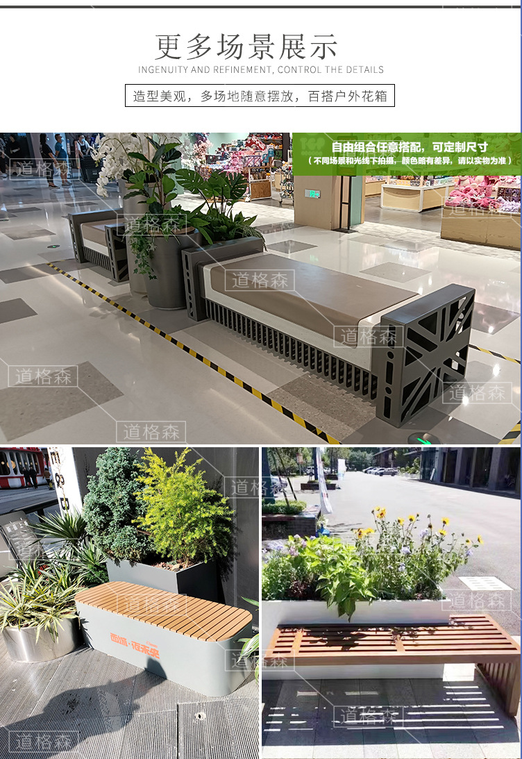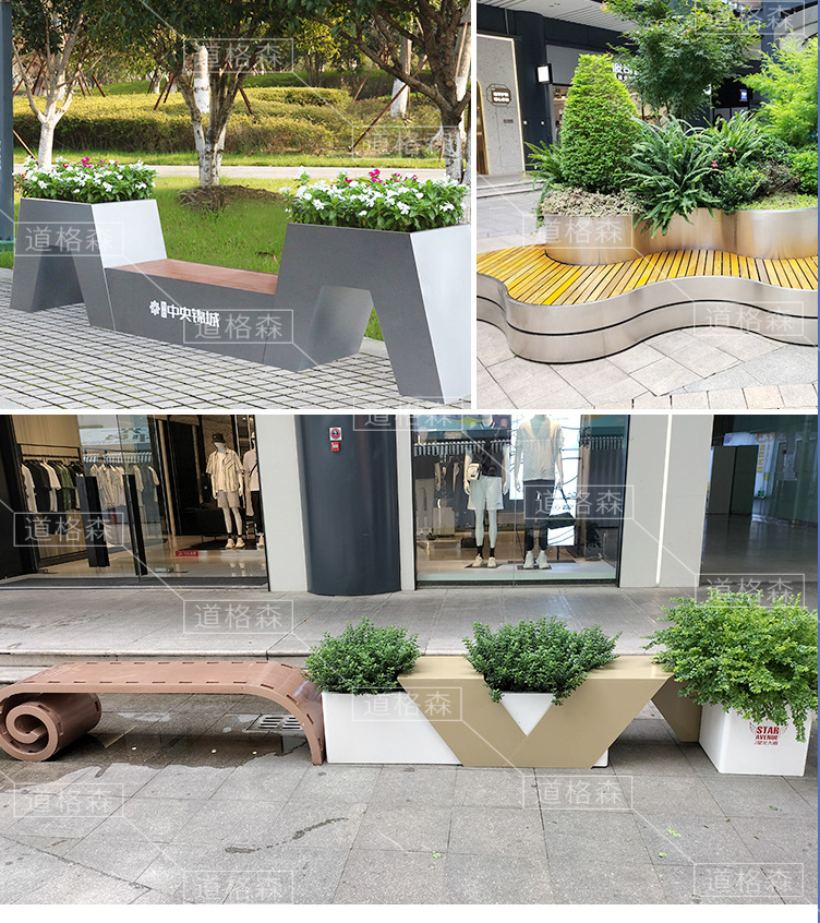 户外花箱坐凳组合公园商业街广场不锈钢花坛塑木花箱座椅花槽定制