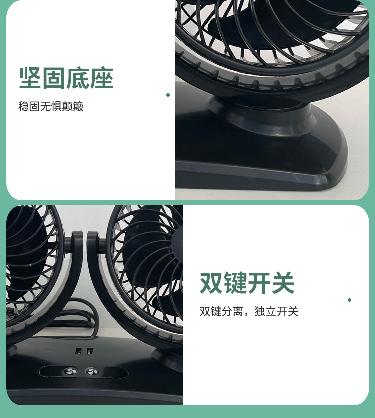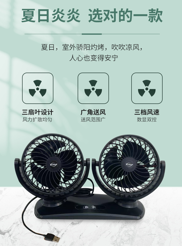 新款车载风扇 usb点烟器可摇头迷你小风扇批发车载电器双头风扇