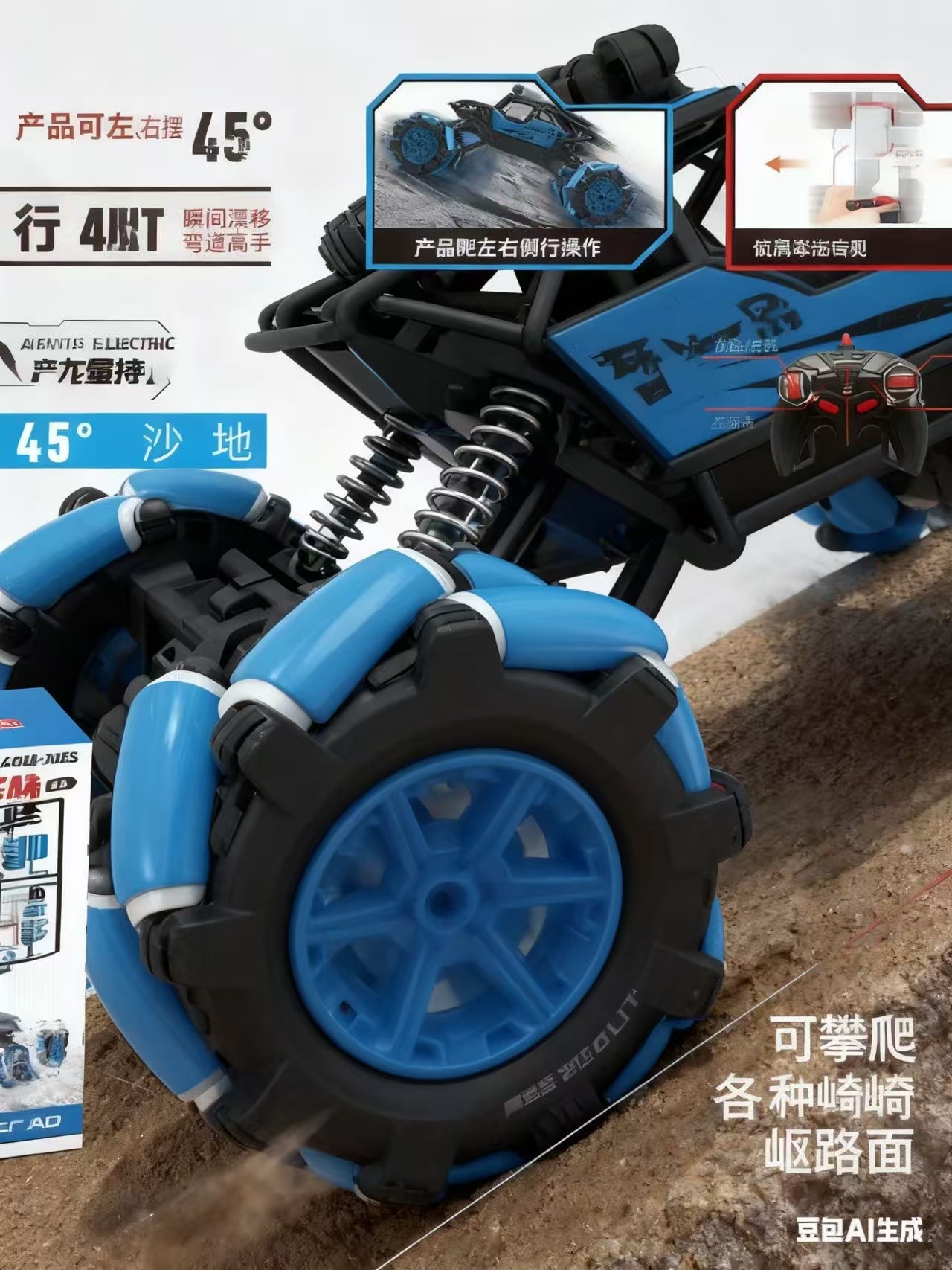 - 颜色:蓝色遥控款-横行漂移-攀爬越野+充电电池+USB充电线+螺丝刀