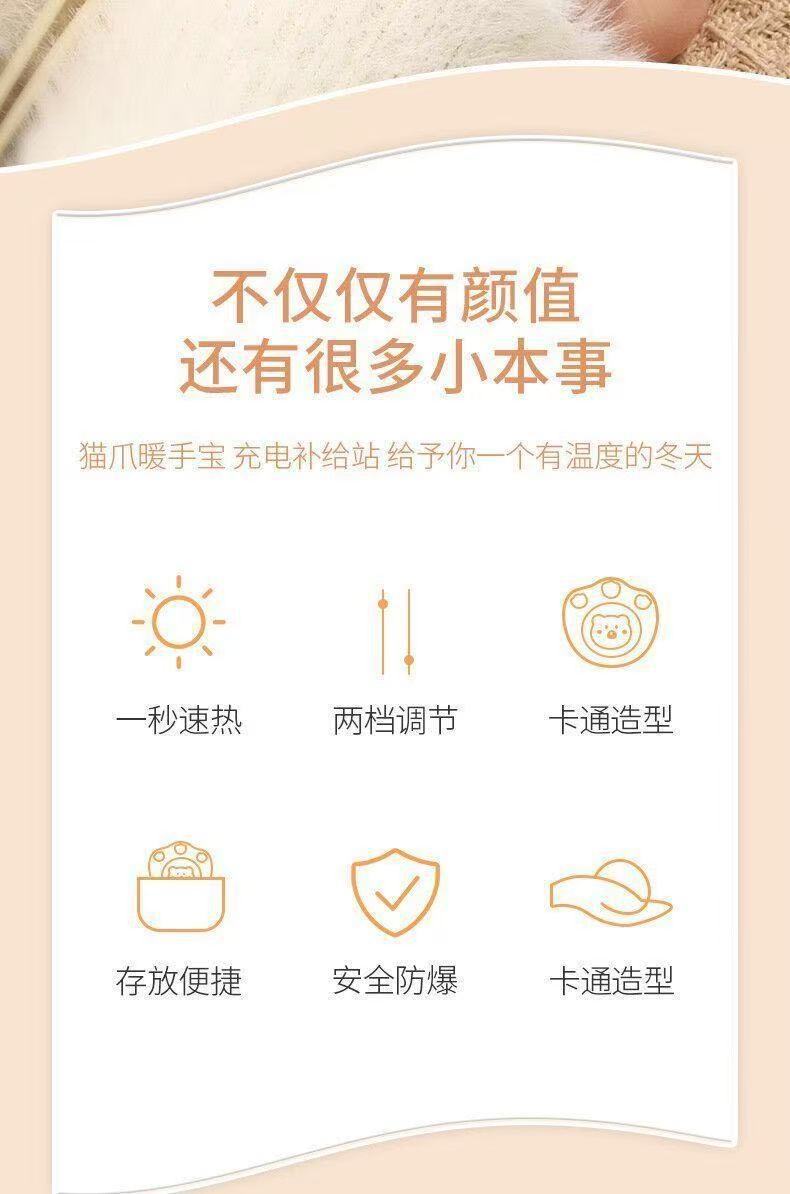 新款USB充电猫爪暖手宝 猫爪防爆小巧便携式萌宠卡通充电式暖手宝