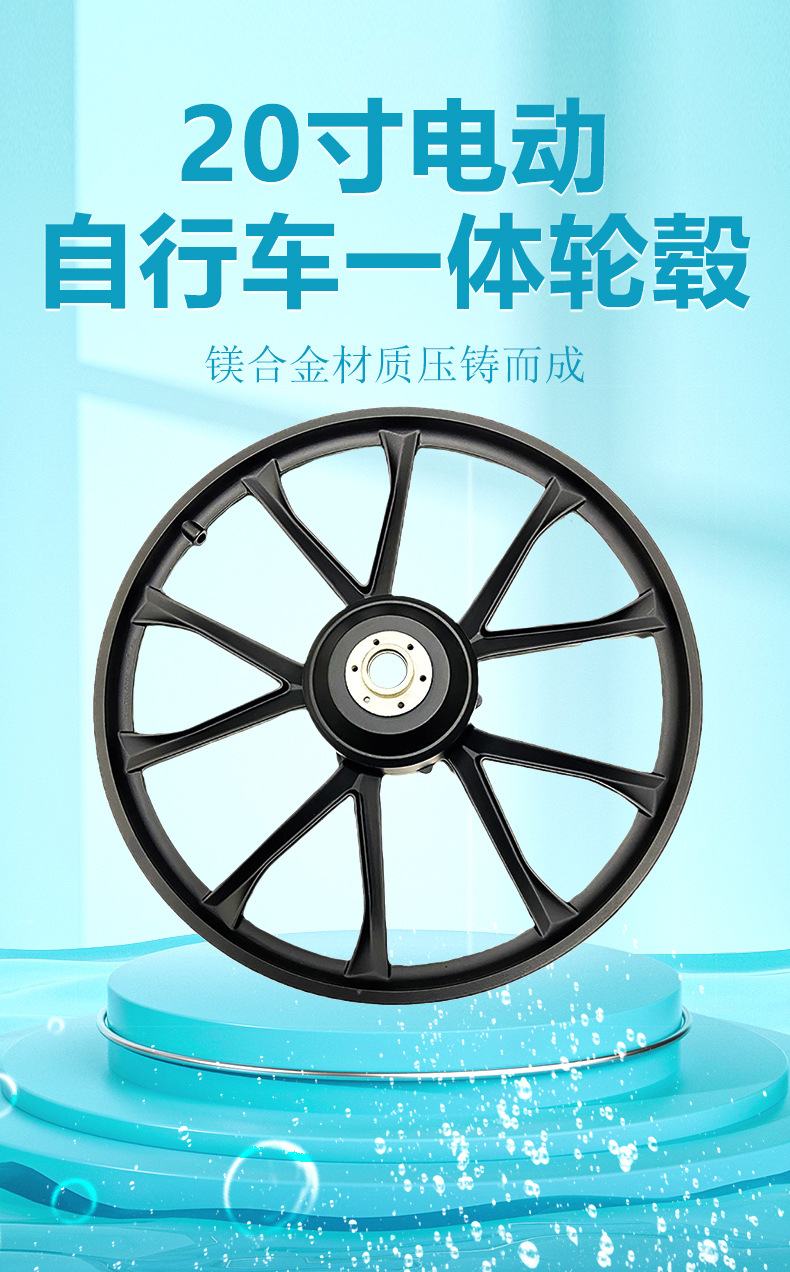 厂家批发20寸十刀镁合金锂电车一体轮共享电动车轮毂锂电自行车轮