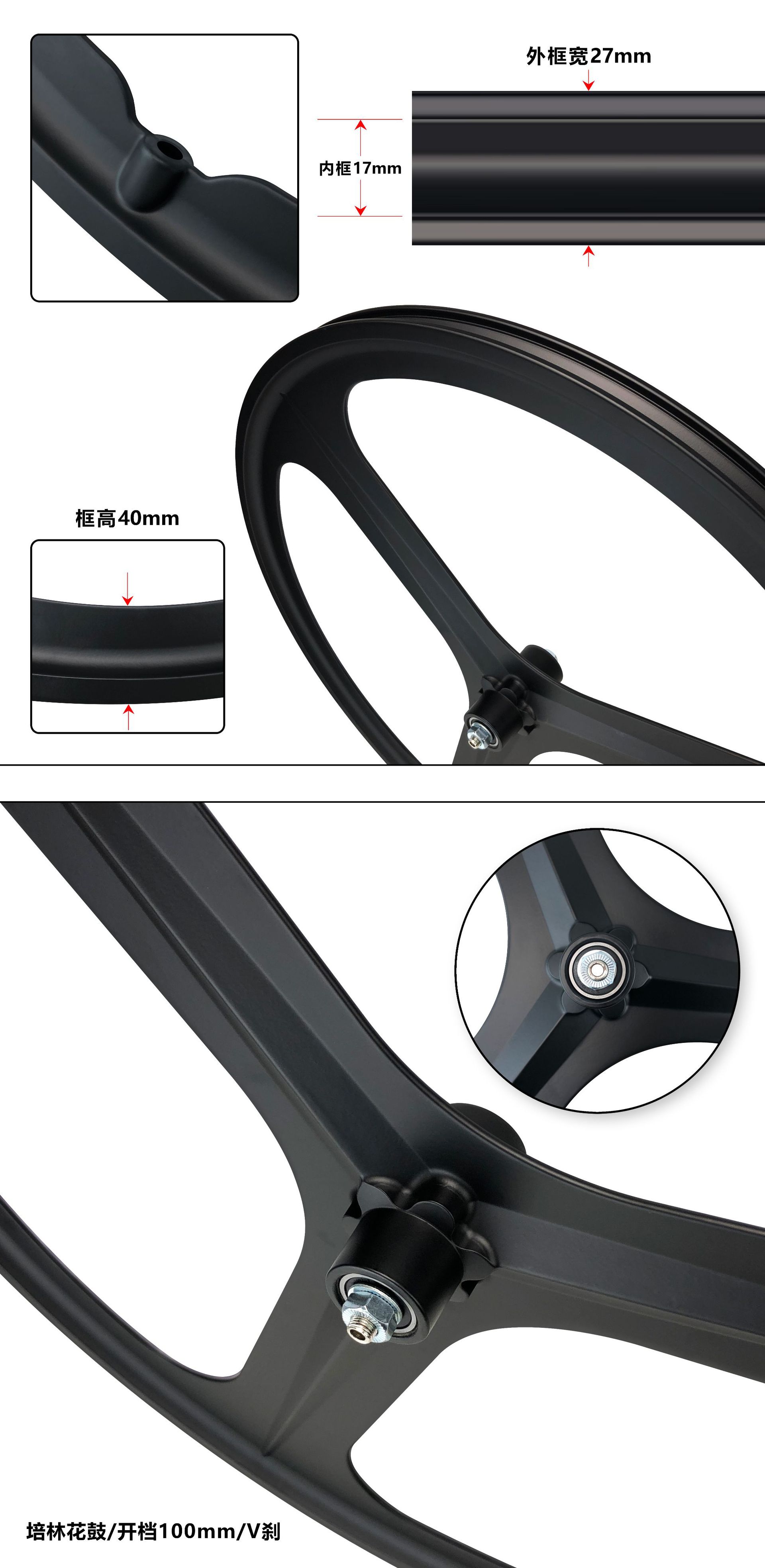 700C车圈公路自行车一体轮组镁合金死飞自行车三刀前后轮毂