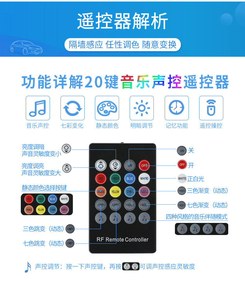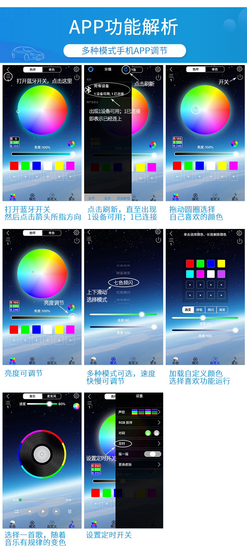 星空顶汽车改装顶棚光纤灯led发光器app满天星小体积星空顶光源机