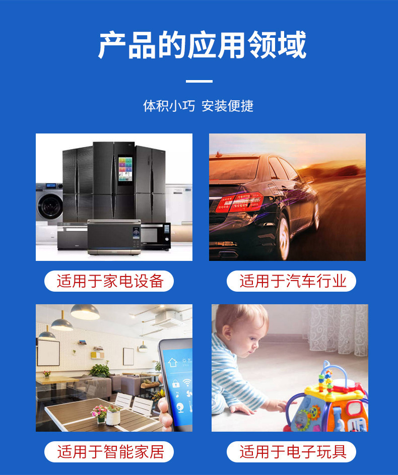 - 适用产品:计算机 印机 复印机 报警器 电子玩具 汽车电子设备 电话机