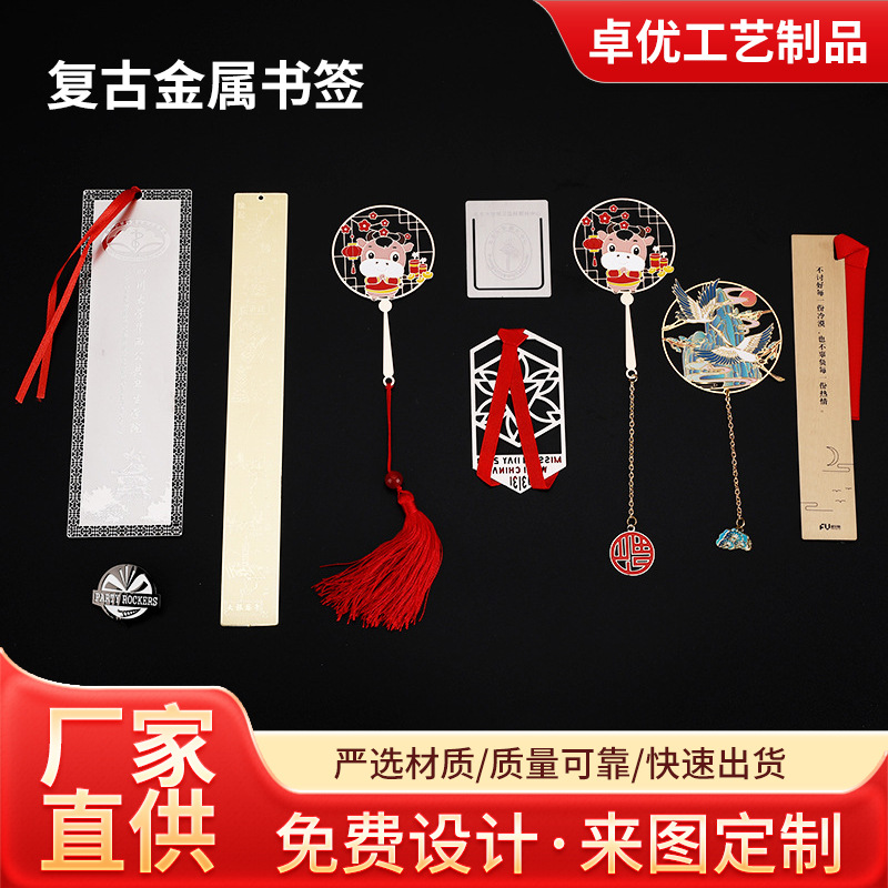 复古金属书签白鹤烤漆黄铜镂空书签古风创意复古书签纪念品供应