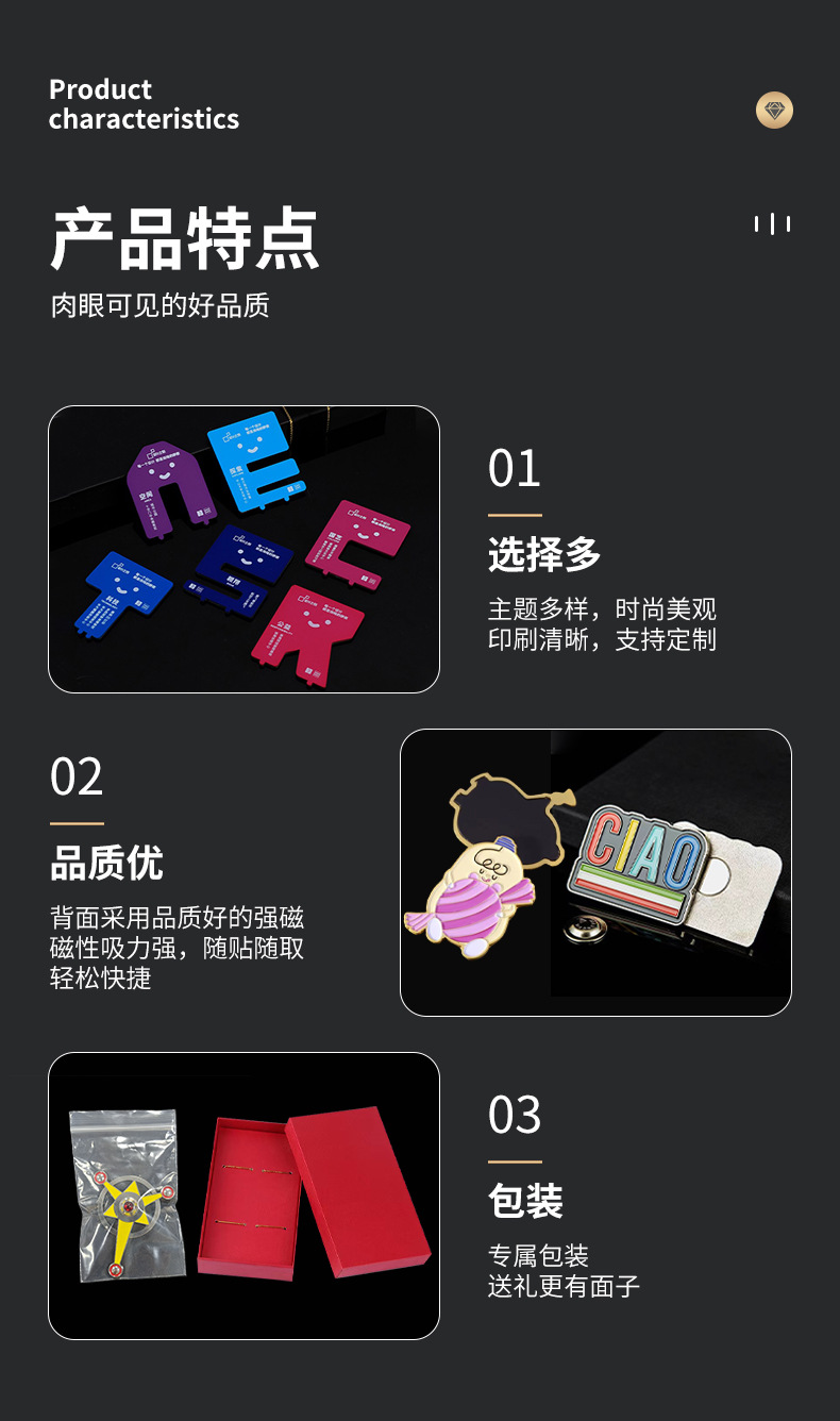 创意磁吸冰箱贴旅游景区文创纪念品冰箱贴流沙金属徽章家用摆件品