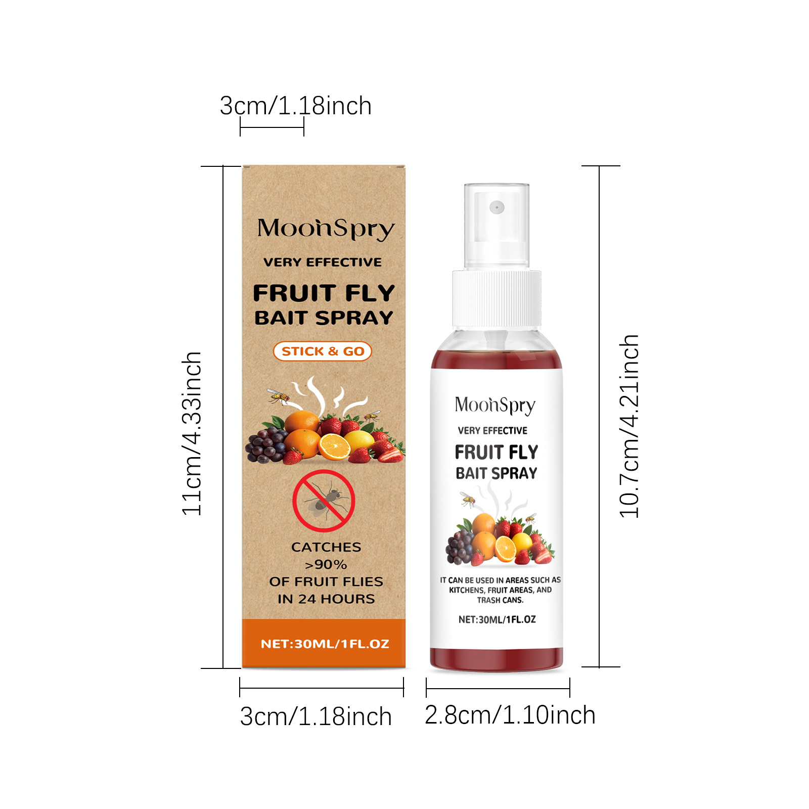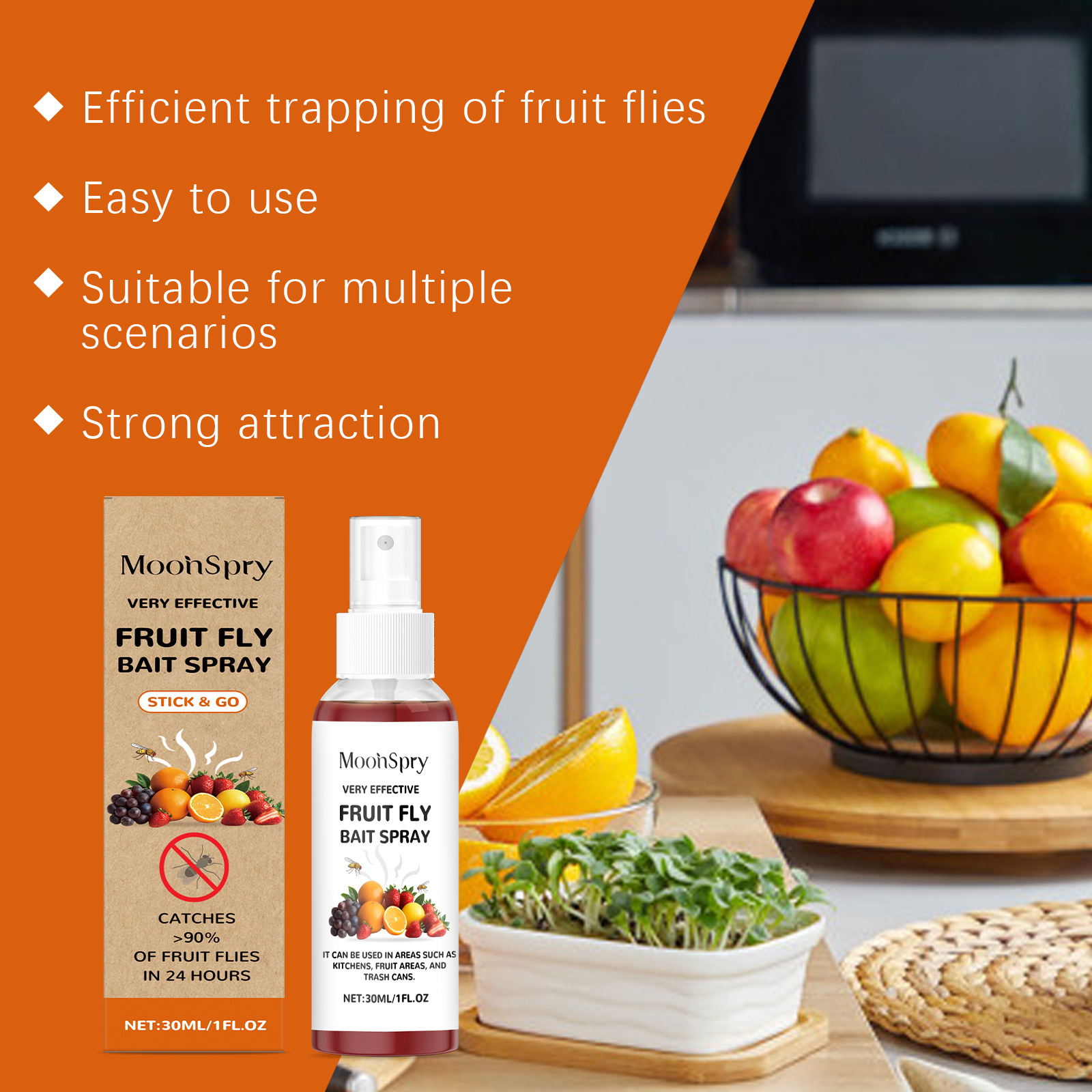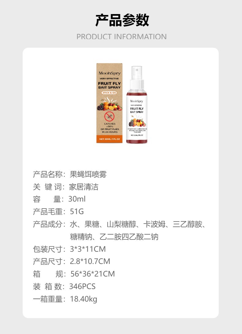 MOONSPRY 果蝇饵喷雾 果糖山梨糖醇配方日常捕捉家用厨房果蝇喷雾