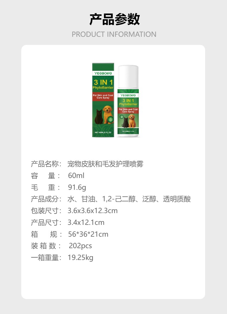 YEGBONG 宠物皮肤和毛发护理喷雾 温和保湿护理日常外用护理喷雾