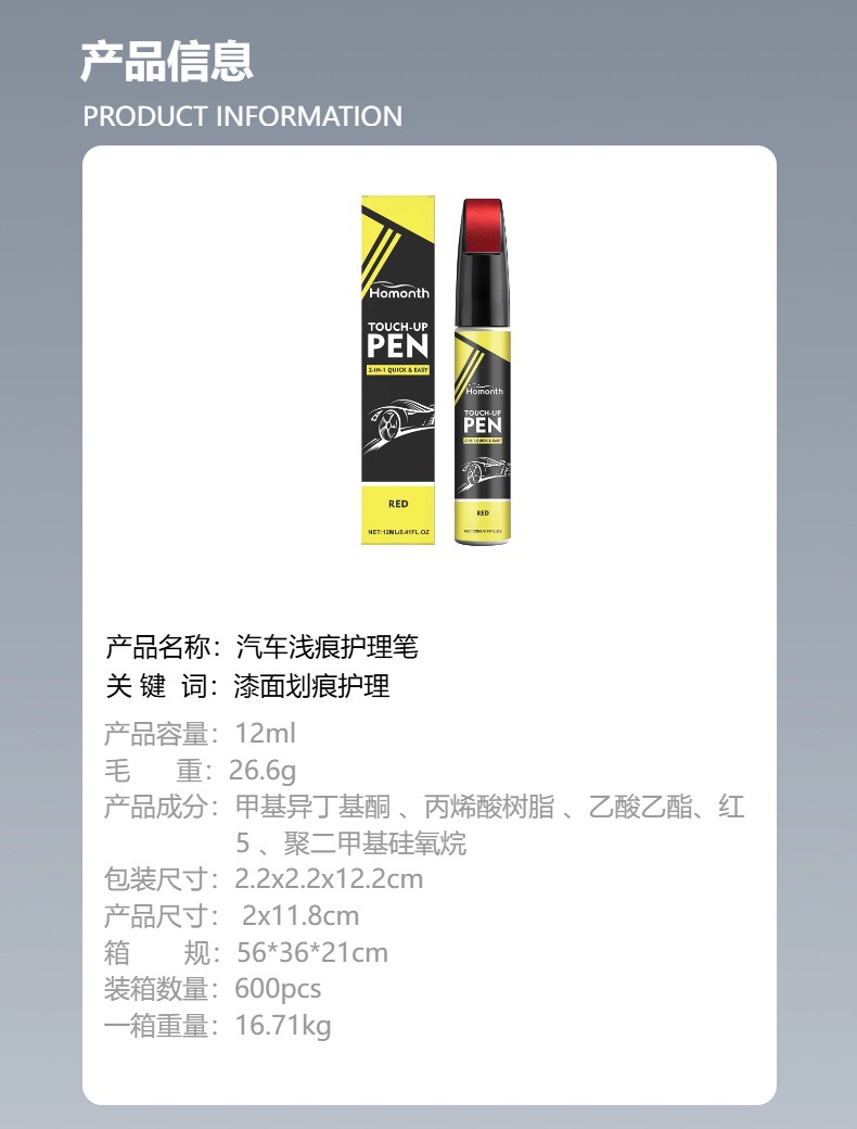 HOMONTH汽车浅痕护理笔 汽车日常补漆翻新亮泽养护便捷护理笔