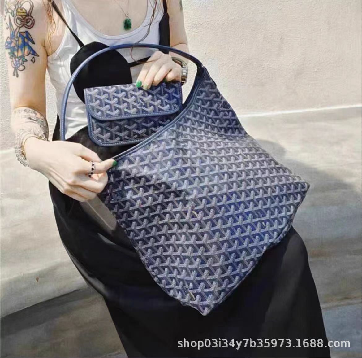goya腋下包大容量y字纹帆布面料配牛皮肩带狗牙hobo单肩包流浪包