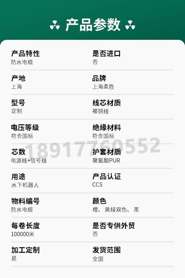 电线电缆 零浮力电缆防海水电缆水下机器人线缆聚氨酯PUR电缆耐寒电缆特种电缆