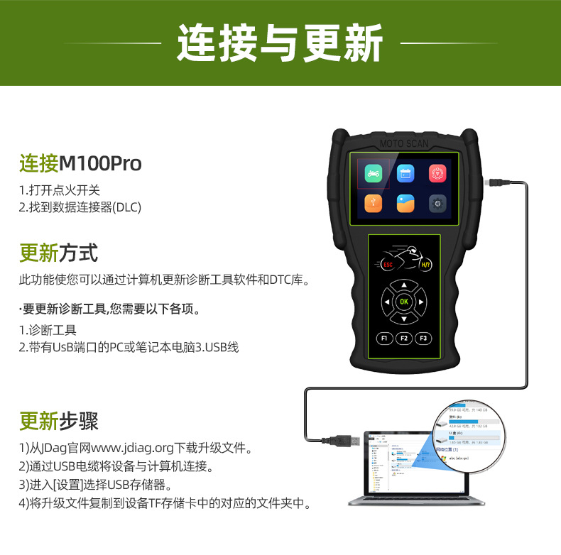 JDiag电喷系统检测诊断仪 摩托车电池检测分析仪Motorcycle Tools