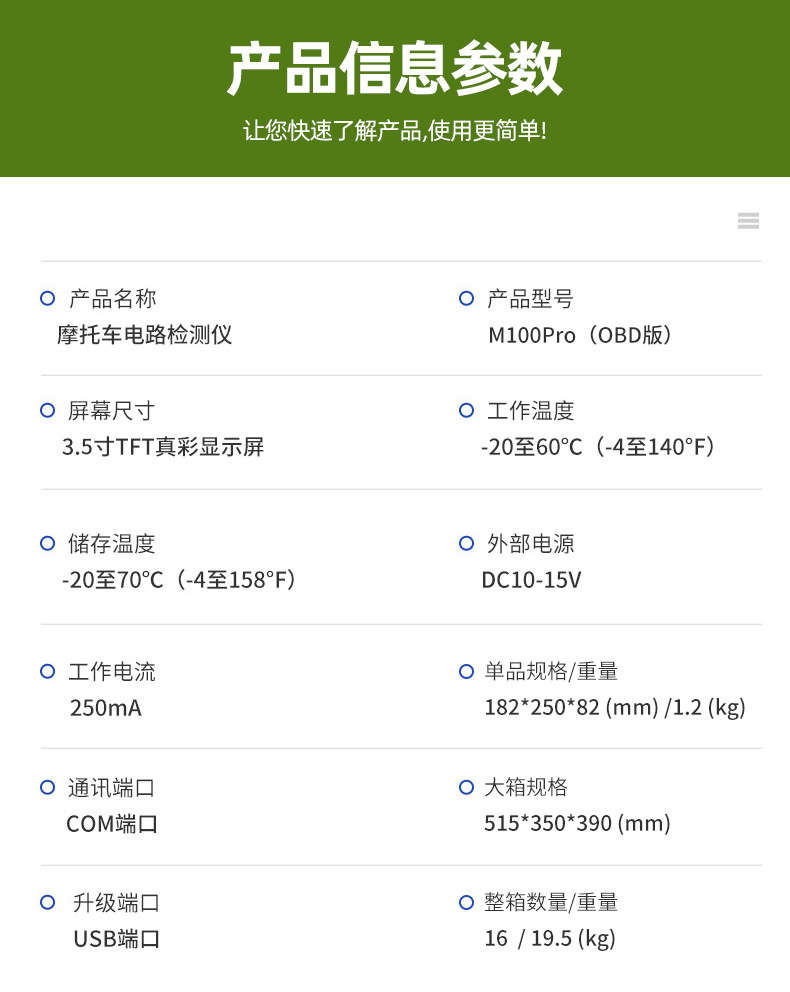 - 类型:摩托车诊断仪
