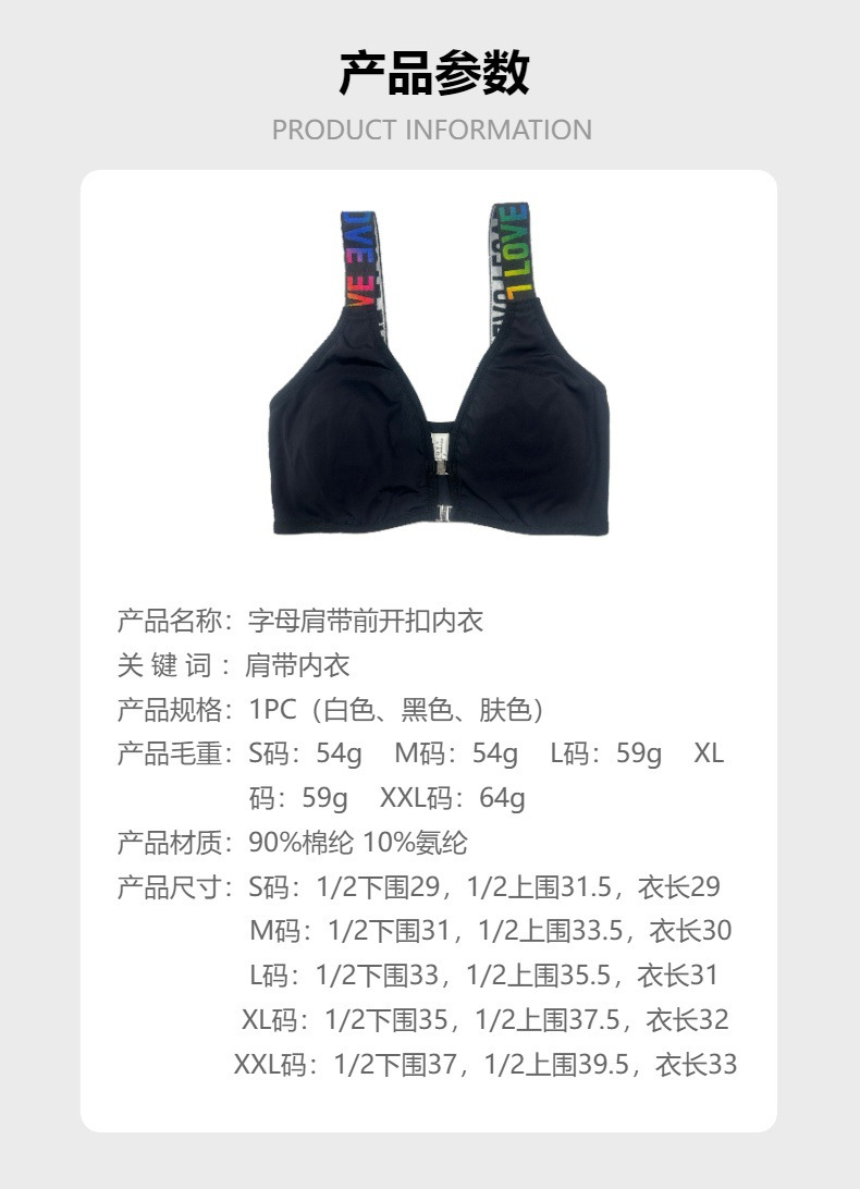 Zeriluna 字母肩带前开扣内衣 聚拢舒适透气日常贴肤不空杯内衣