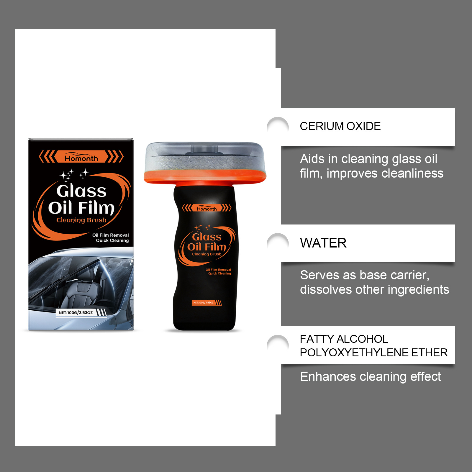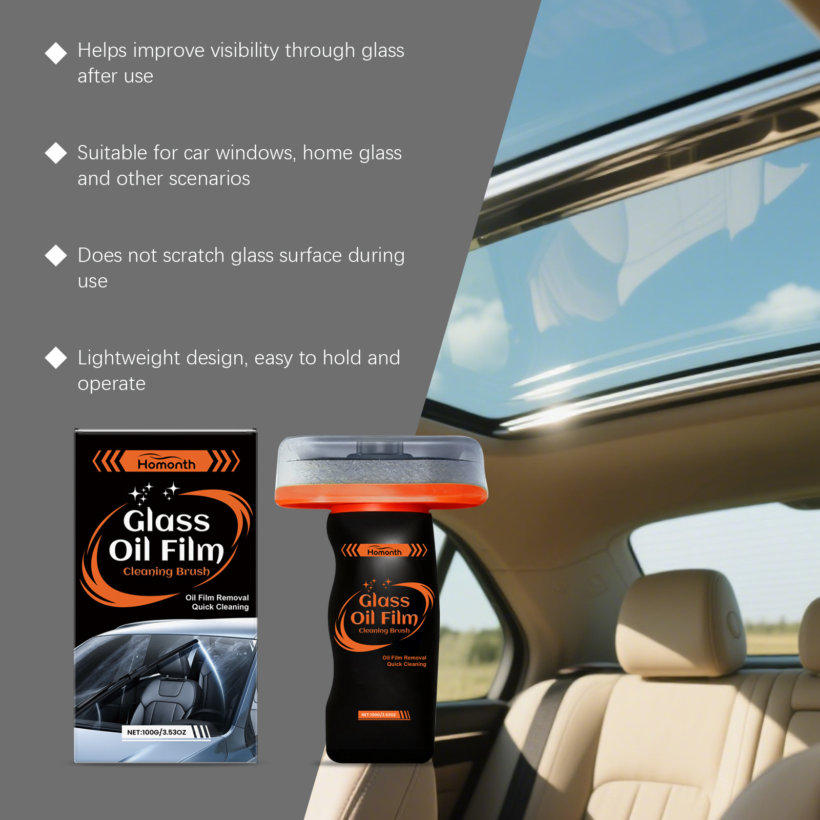 HOMONTH 玻璃油膜清洁刷 挡风玻璃后视镜水渍污渍清洁亮泽清洁擦