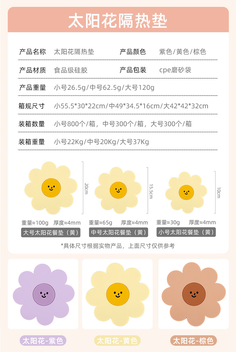 太阳花卡通隔热垫硅胶创意餐桌垫子耐高温防水碗垫防滑杯垫批发