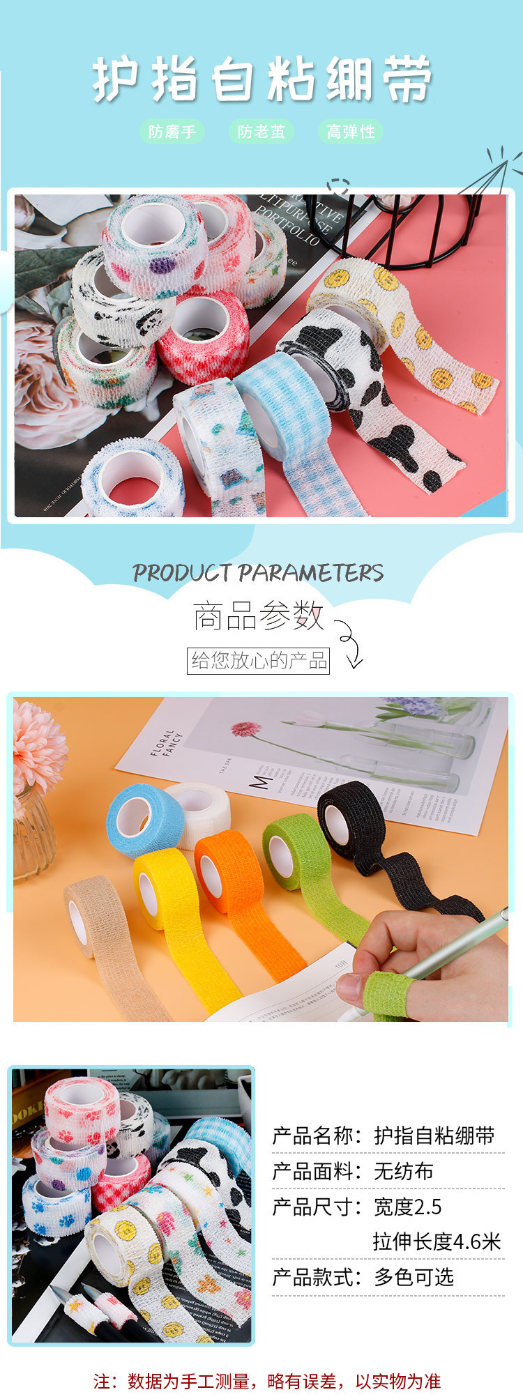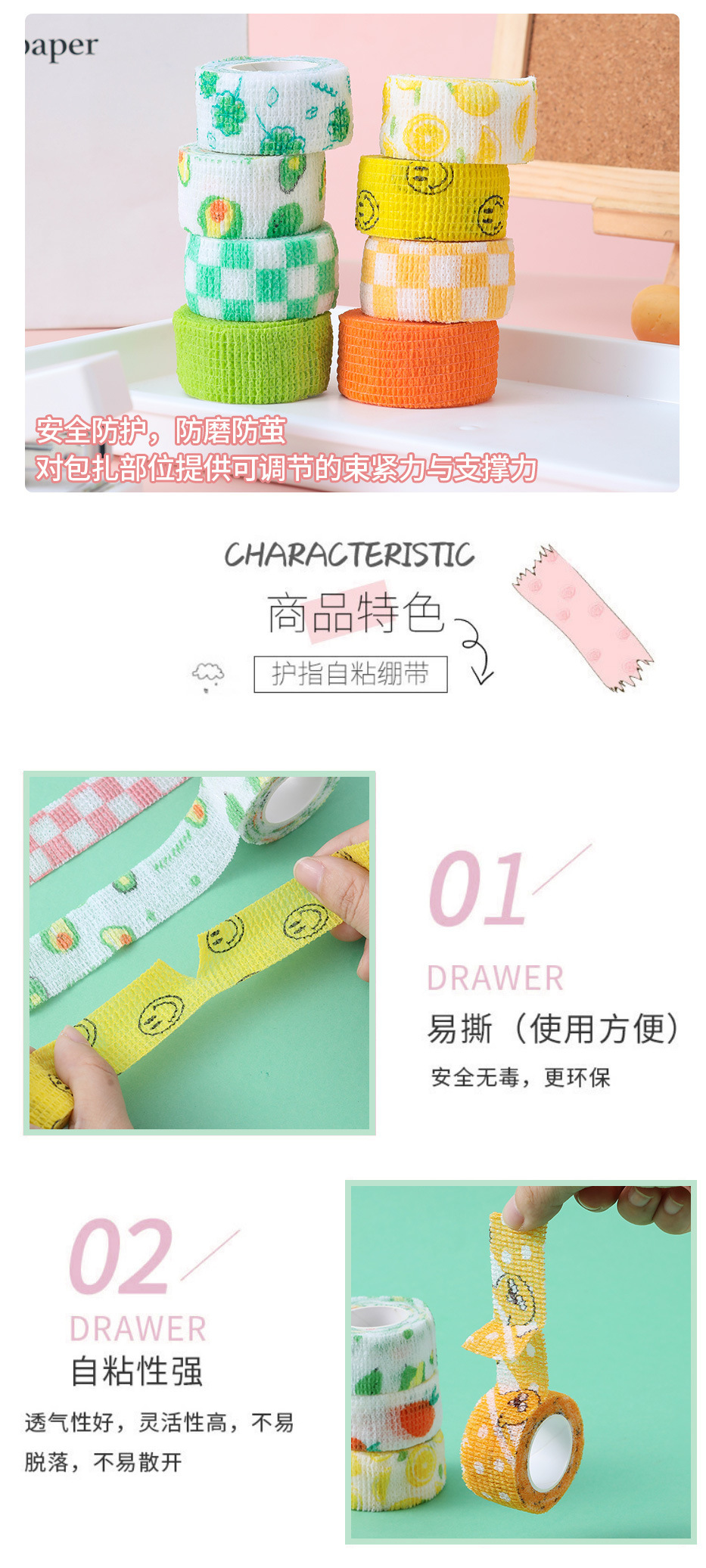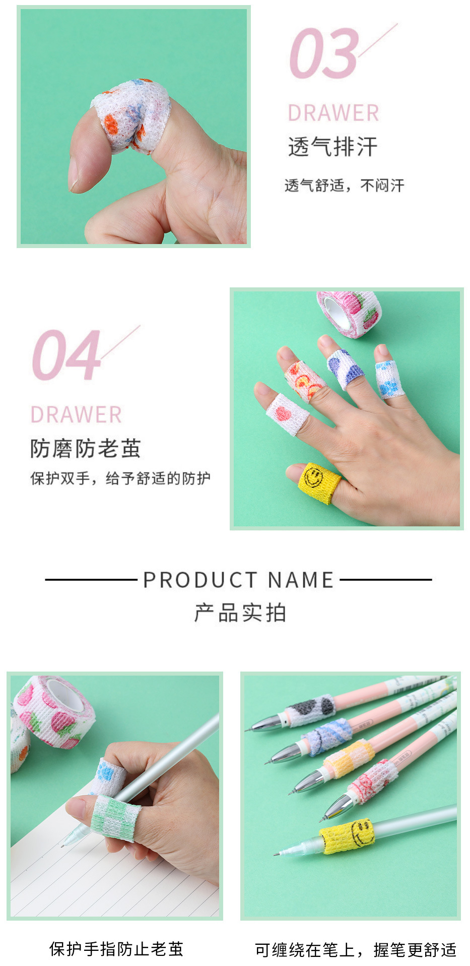 手指绷带学生可爱组合写字护指防磨手胶带卡通防磨防茧自粘护指套