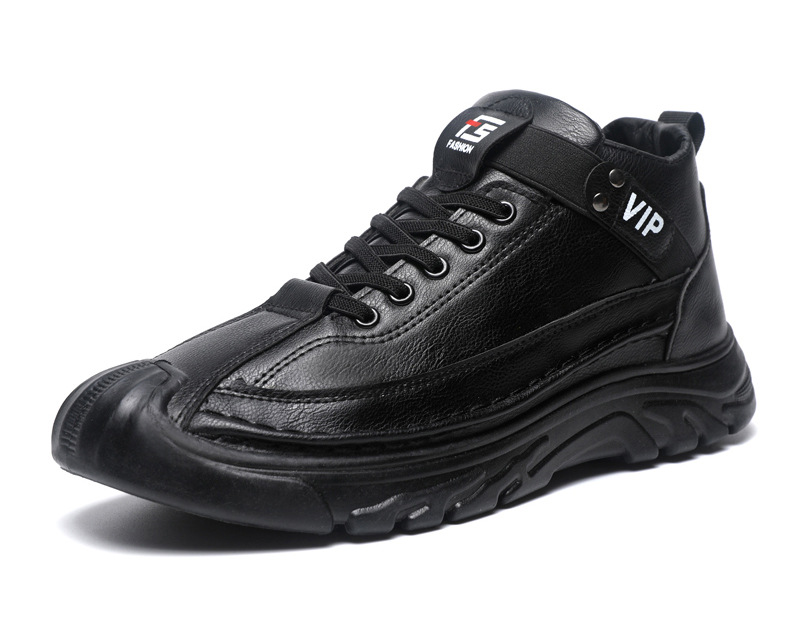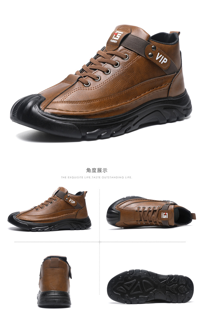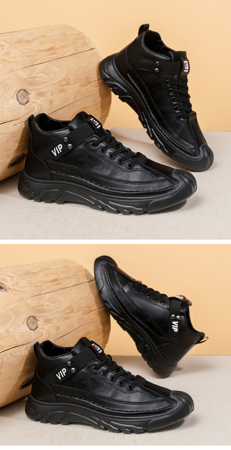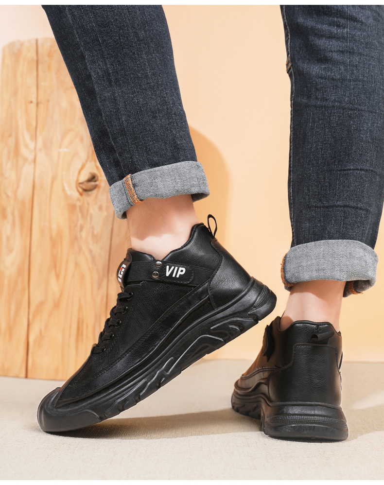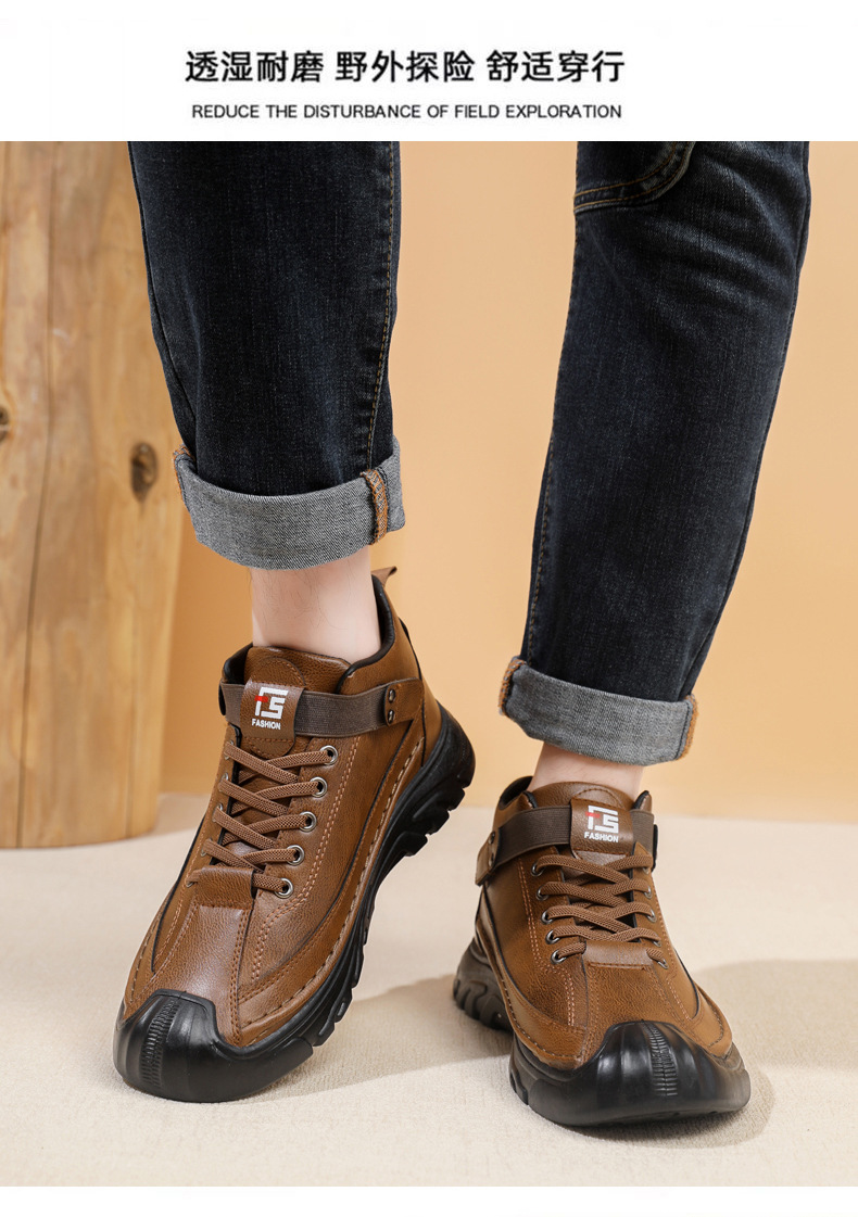 跨境男鞋单棉同款户外休闲运动鞋皮面保暖加绒轻便厚底工装靴男