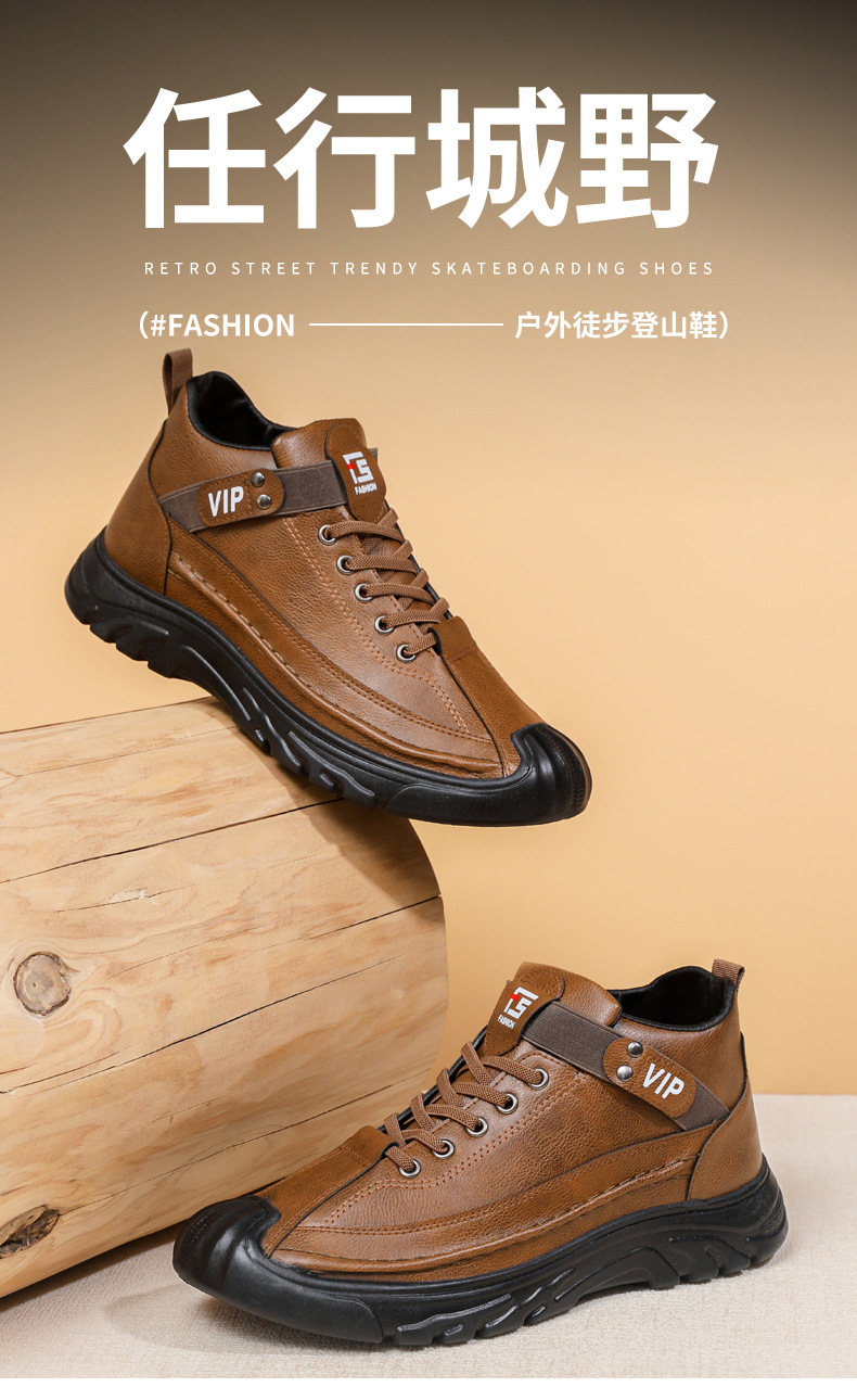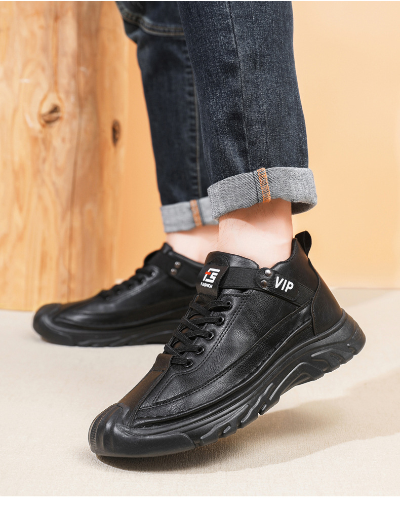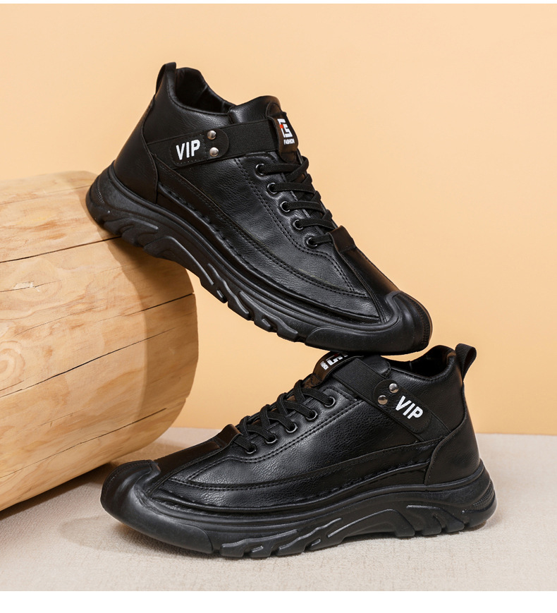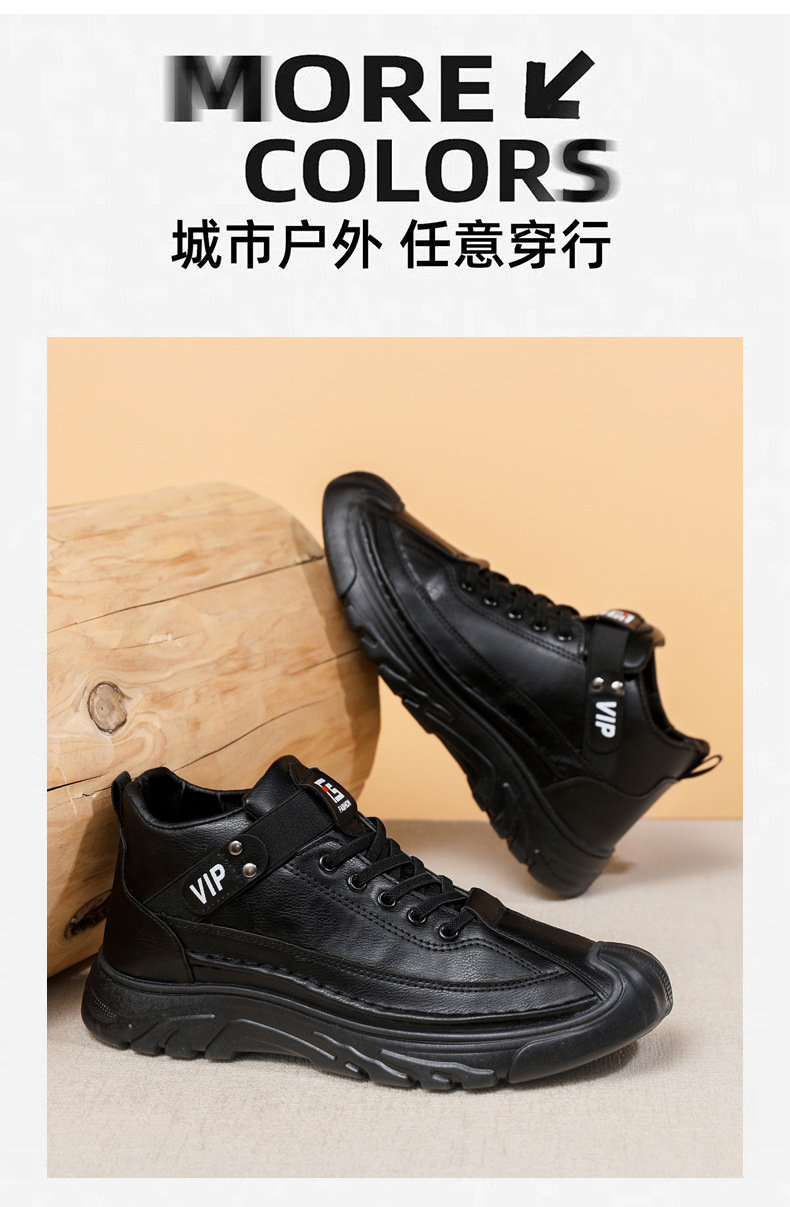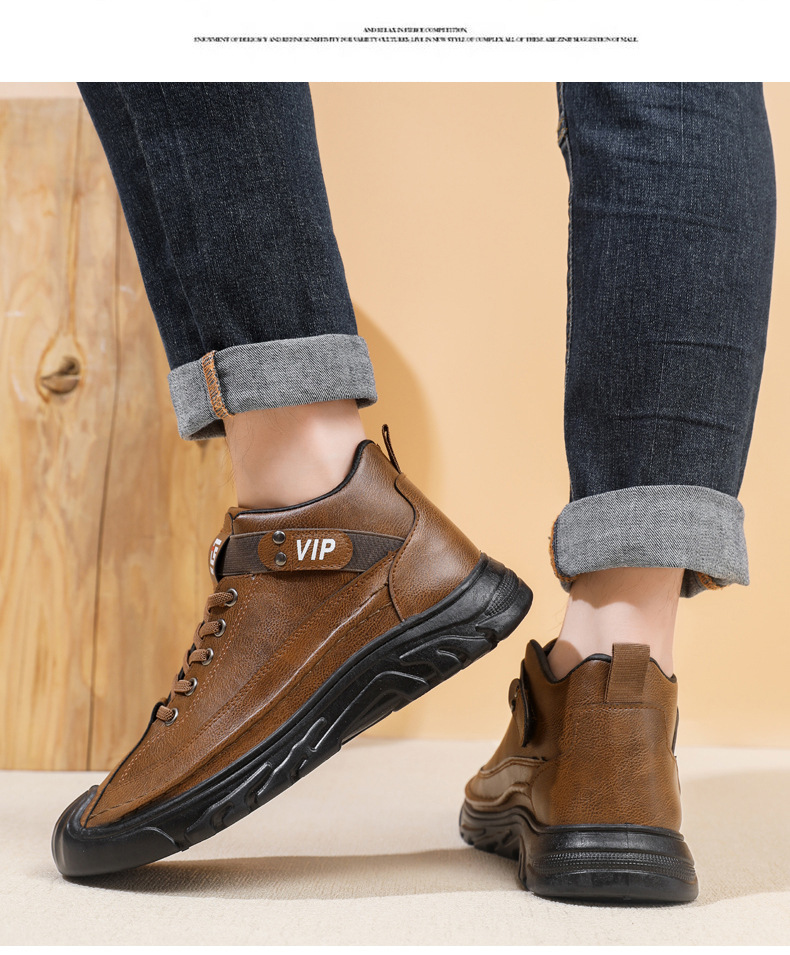 跨境男鞋单棉同款户外休闲运动鞋皮面保暖加绒轻便厚底工装靴男