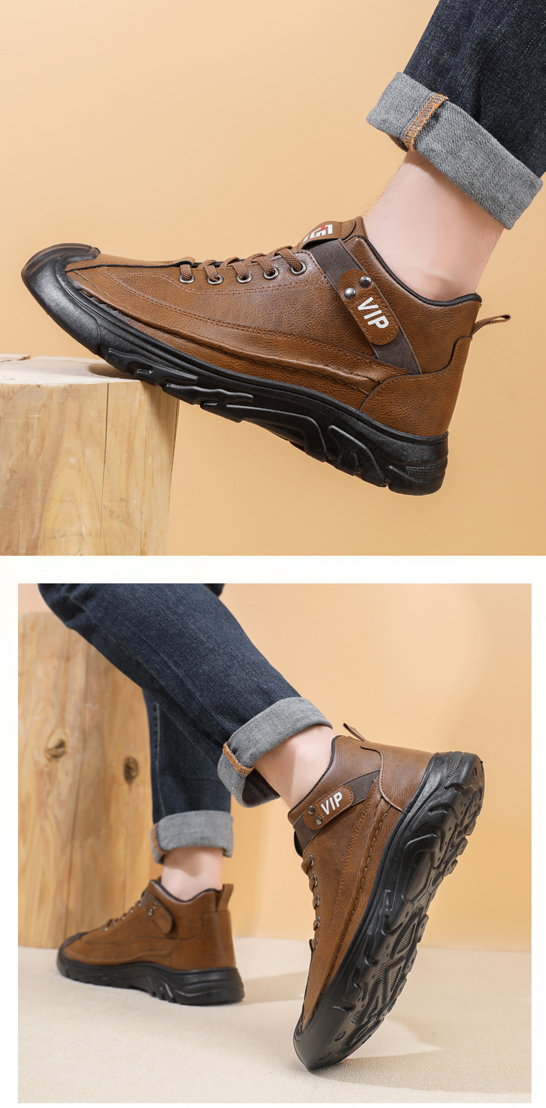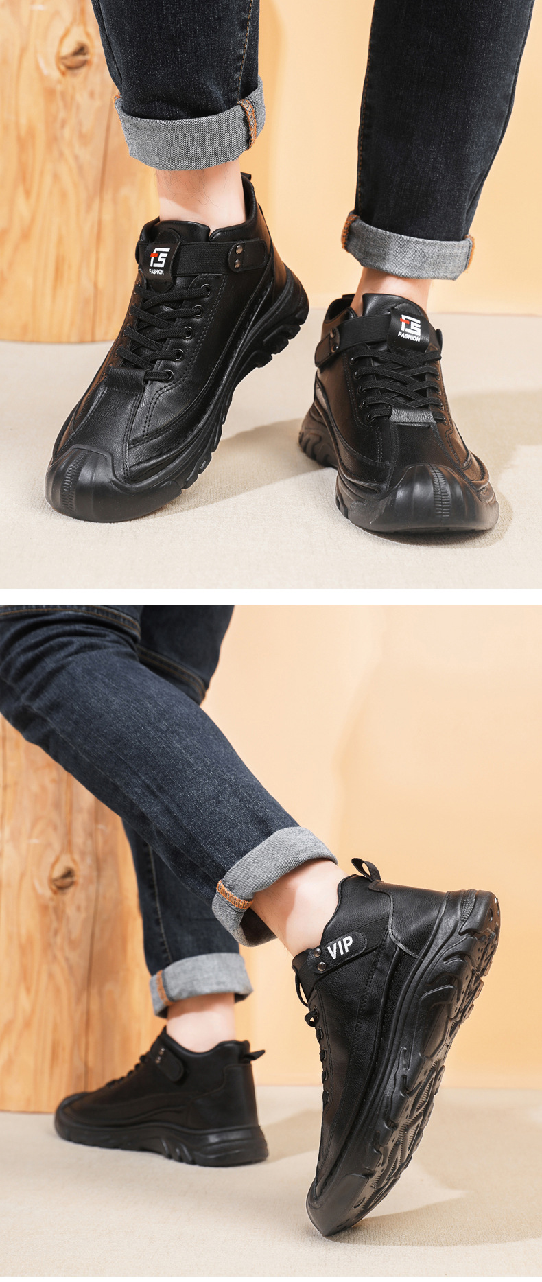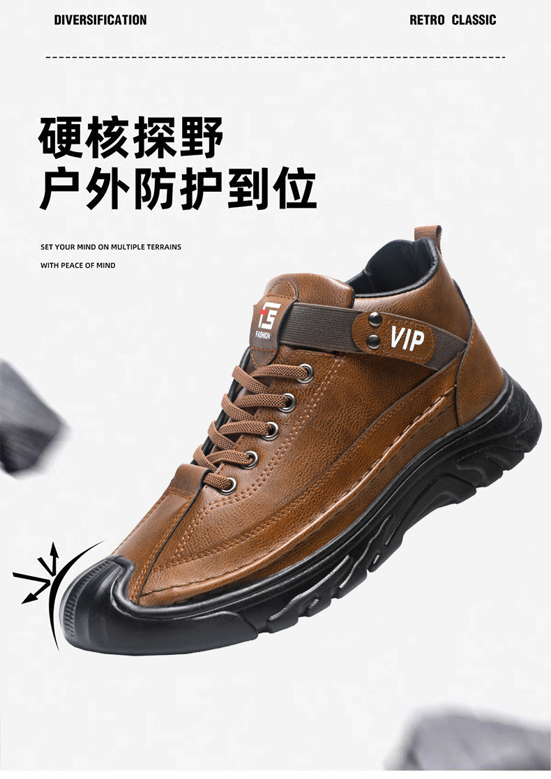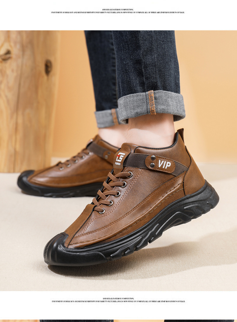 跨境男鞋单棉同款户外休闲运动鞋皮面保暖加绒轻便厚底工装靴男