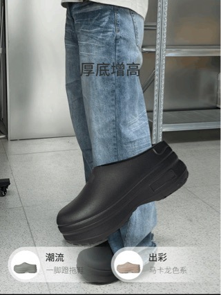 莆田新款纯原舒适软底厨师鞋三叶草厚底女增高运动包头男拖鞋MULE