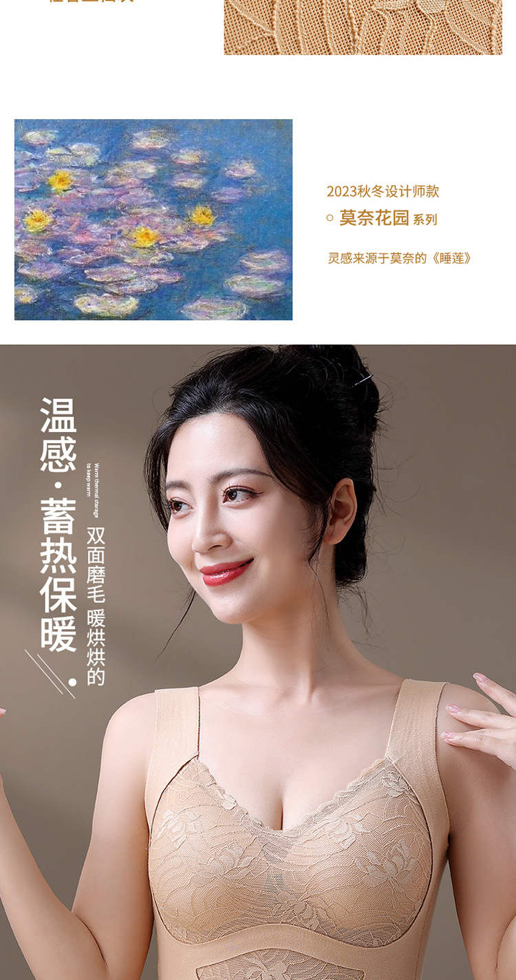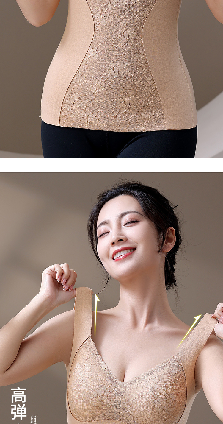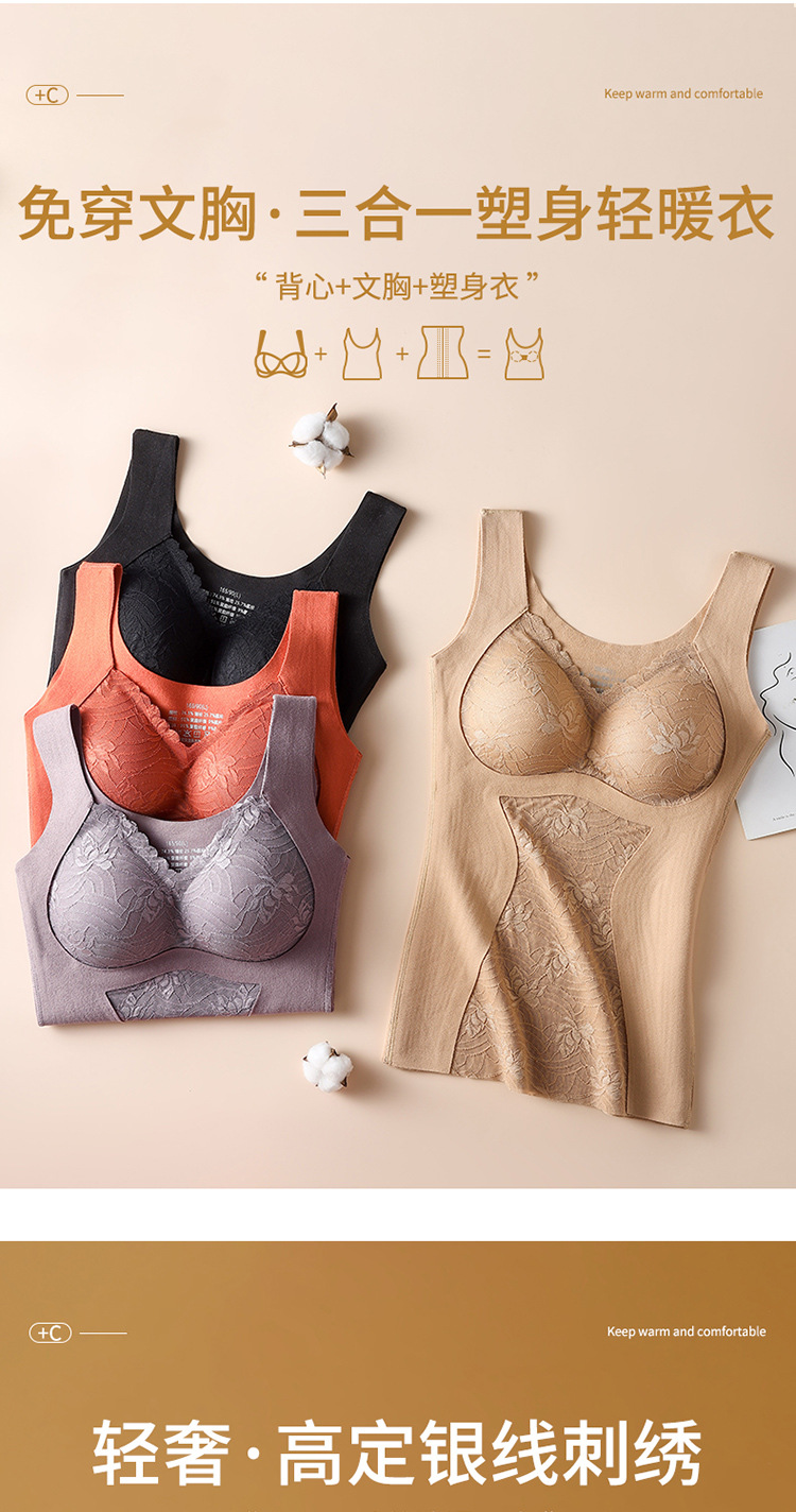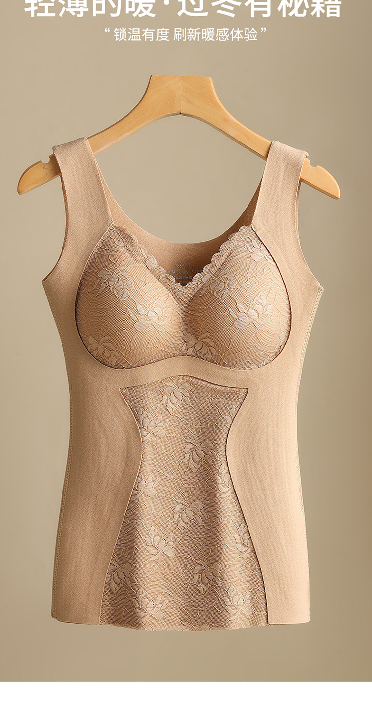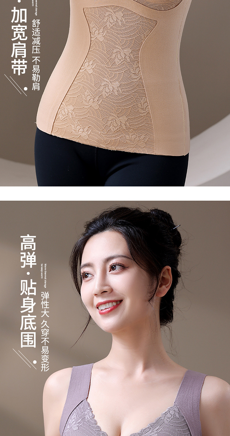 定制保暖内衣女秋冬蕾丝德绒背心固定一体杯打底加厚上衣修身大码