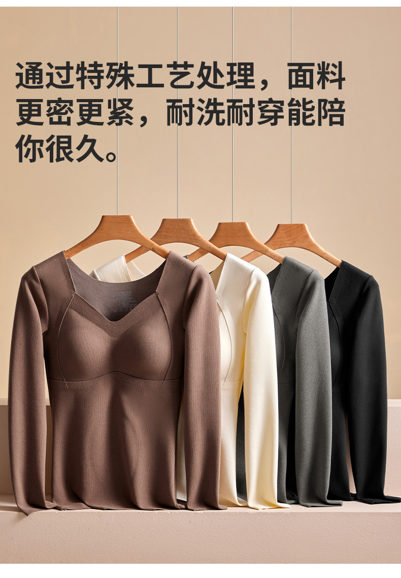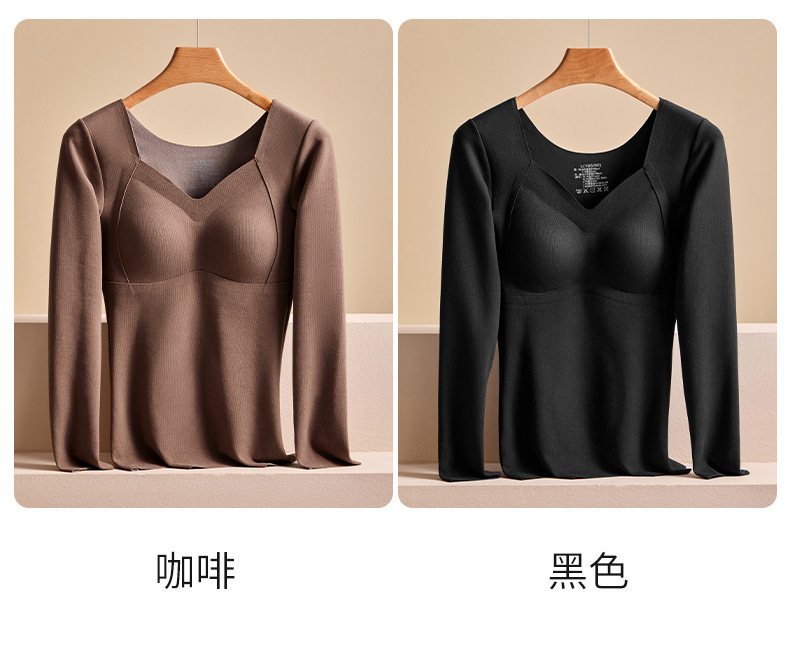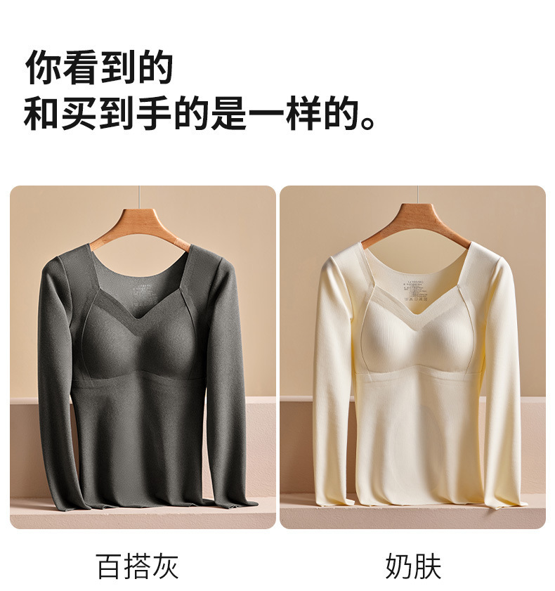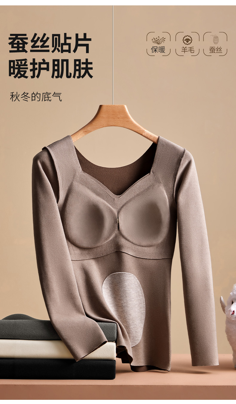 定制秋冬季保暖背心女羊毛蚕丝圆领固定胸垫加绒德绒内搭打底内衣