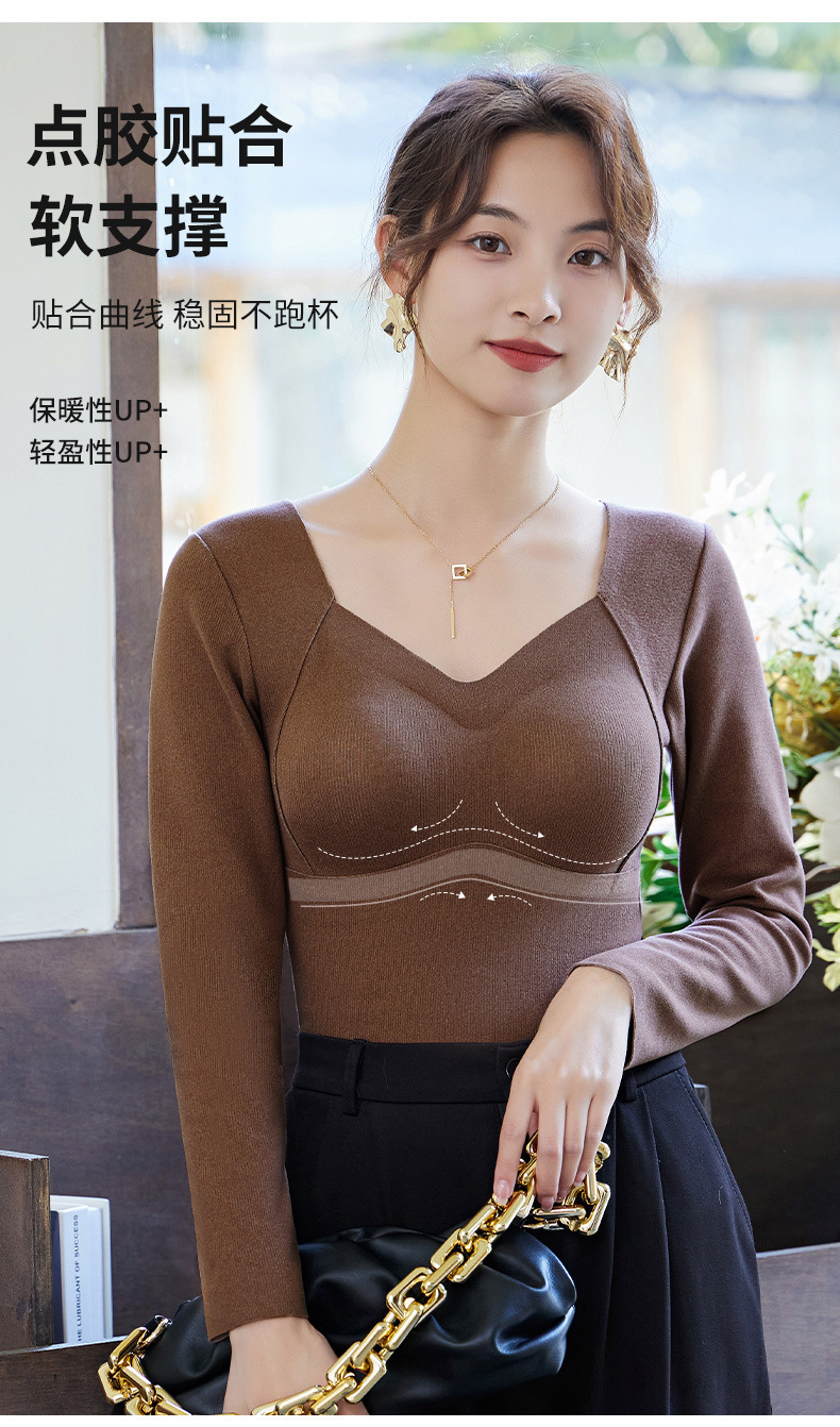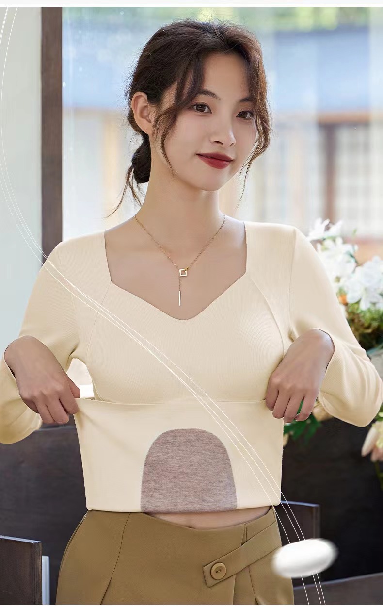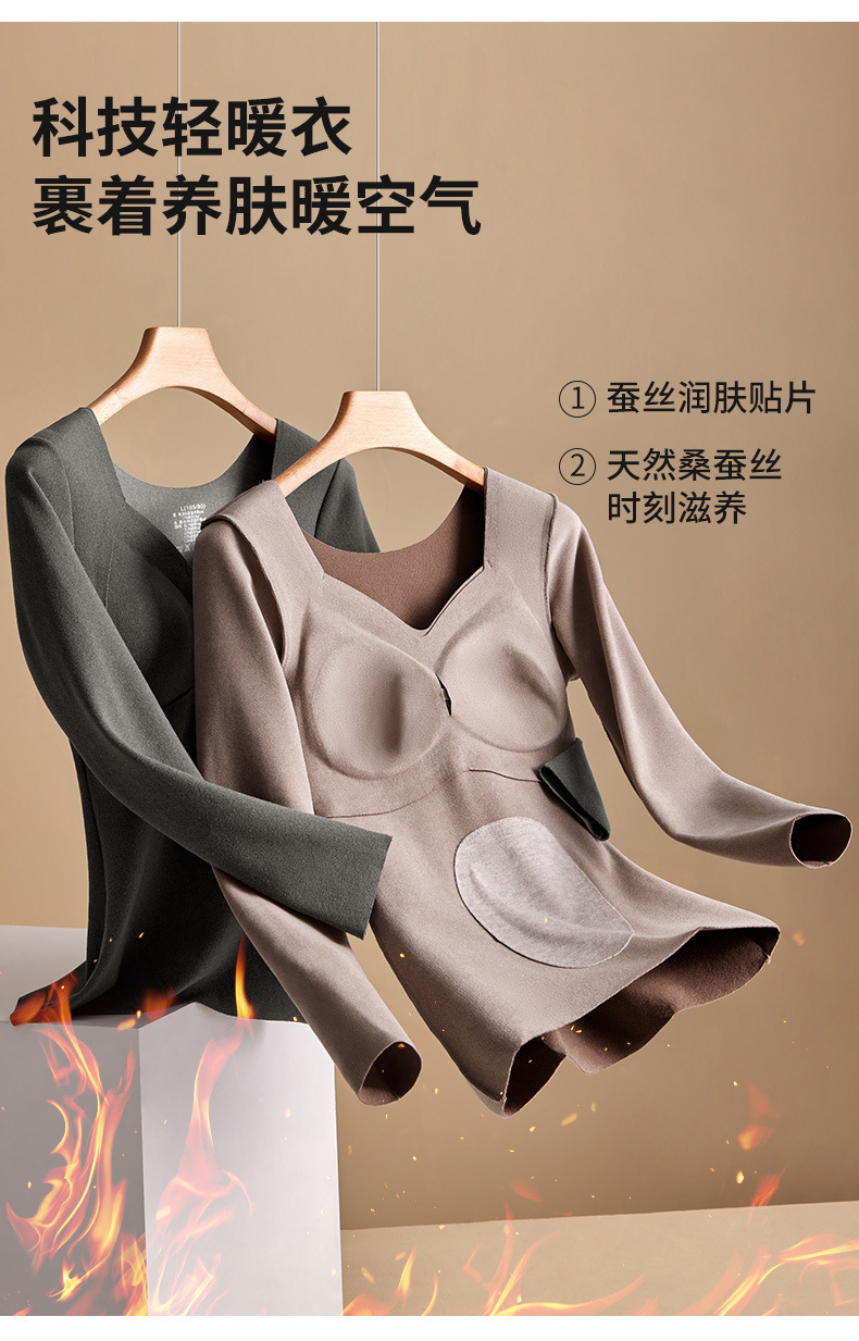 定制秋冬季保暖背心女羊毛蚕丝圆领固定胸垫加绒德绒内搭打底内衣