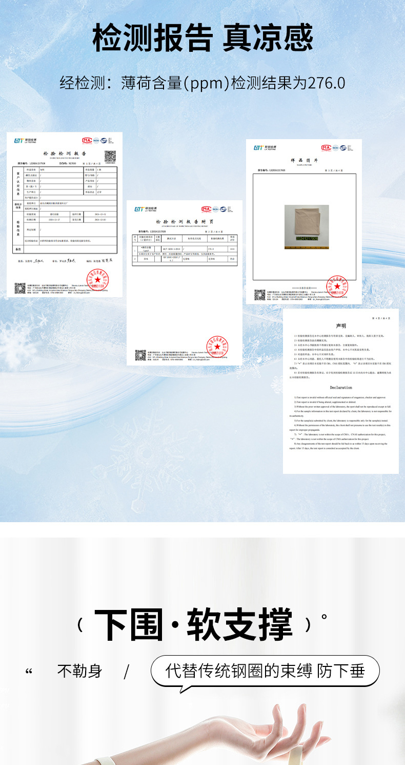 - 检测报告:检测报告显示薄荷含量为276.0 真凉感