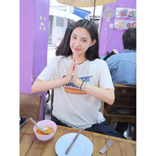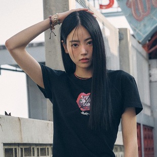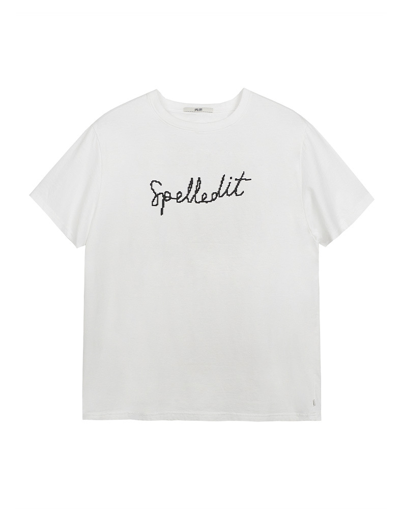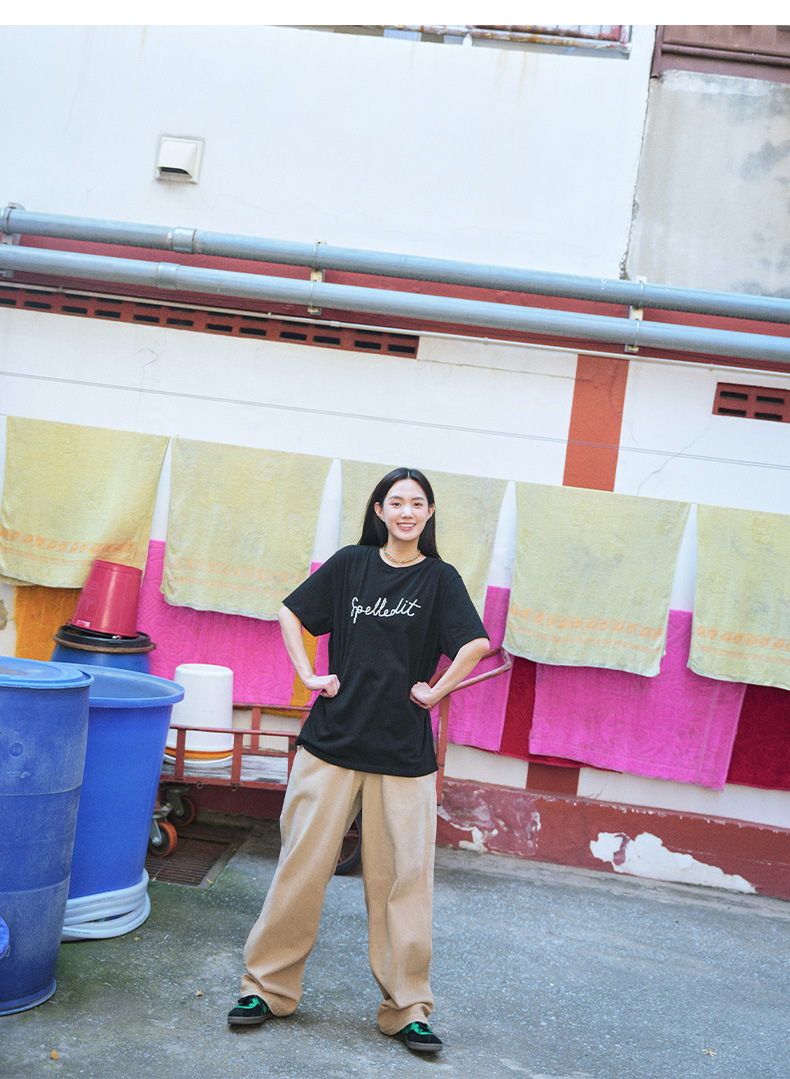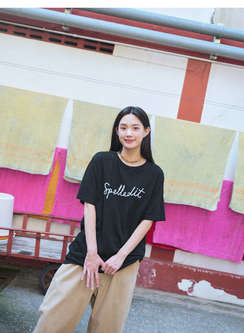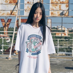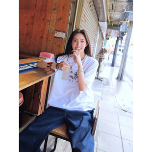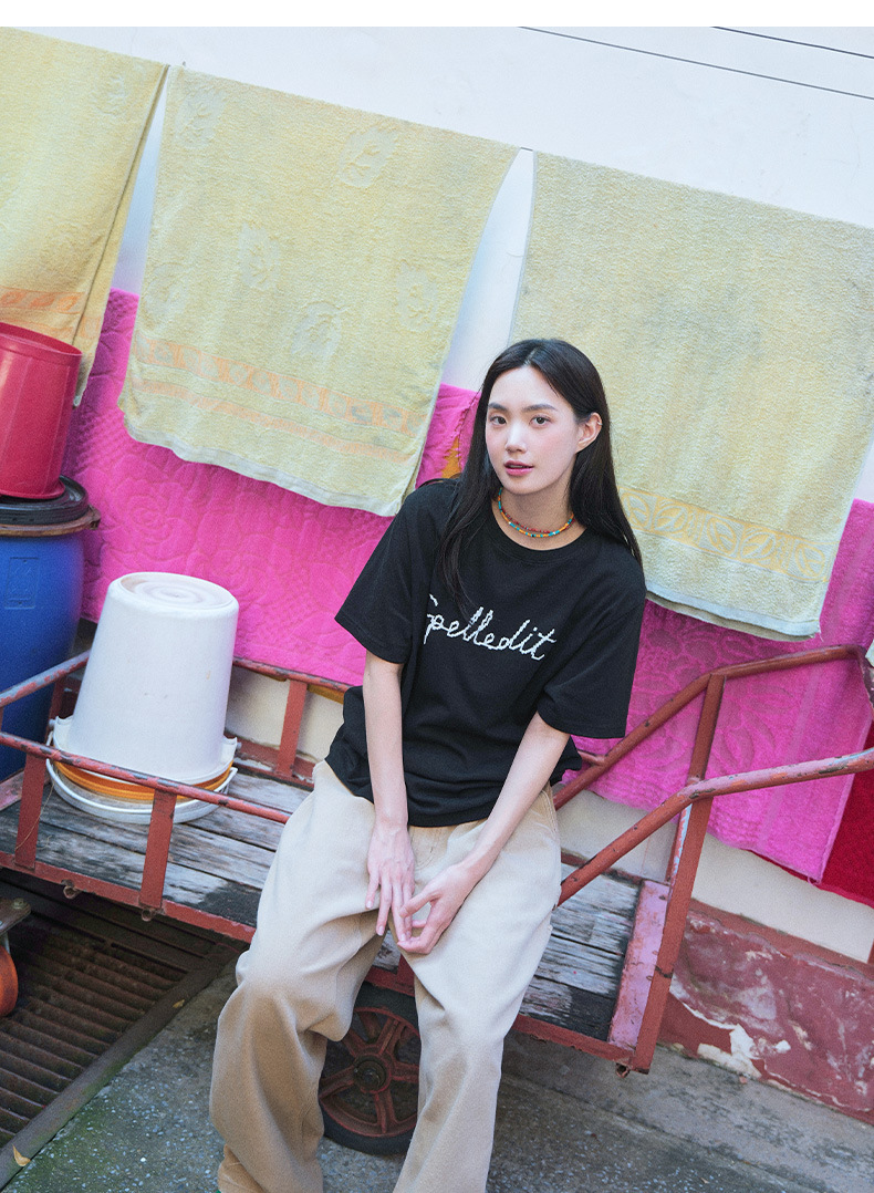 2026年春季新款t恤数码字体宽松圆领印花时尚百搭韩系短袖上衣女