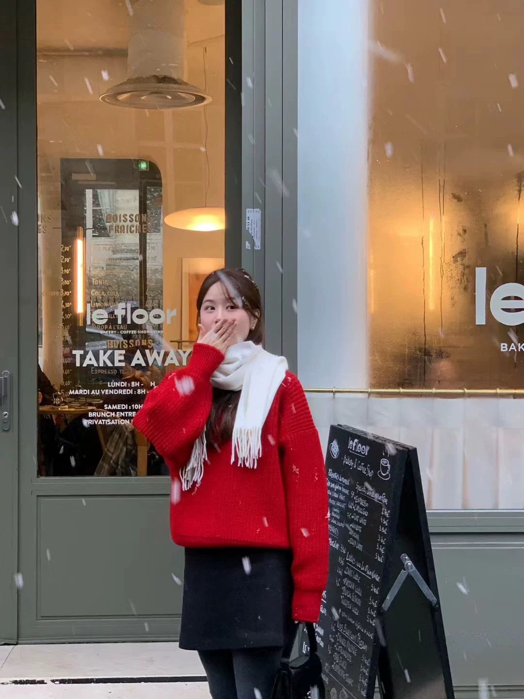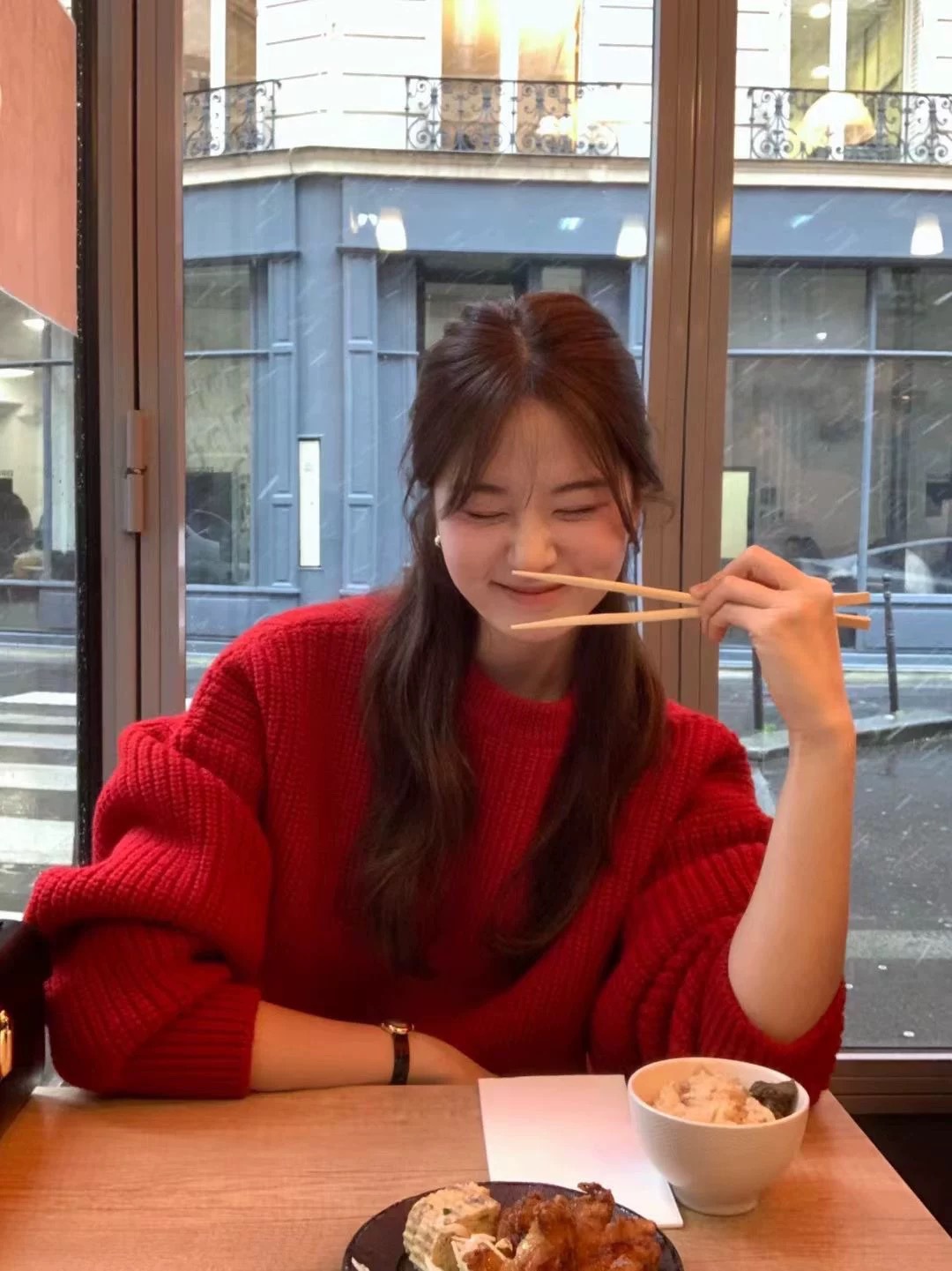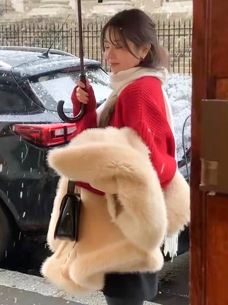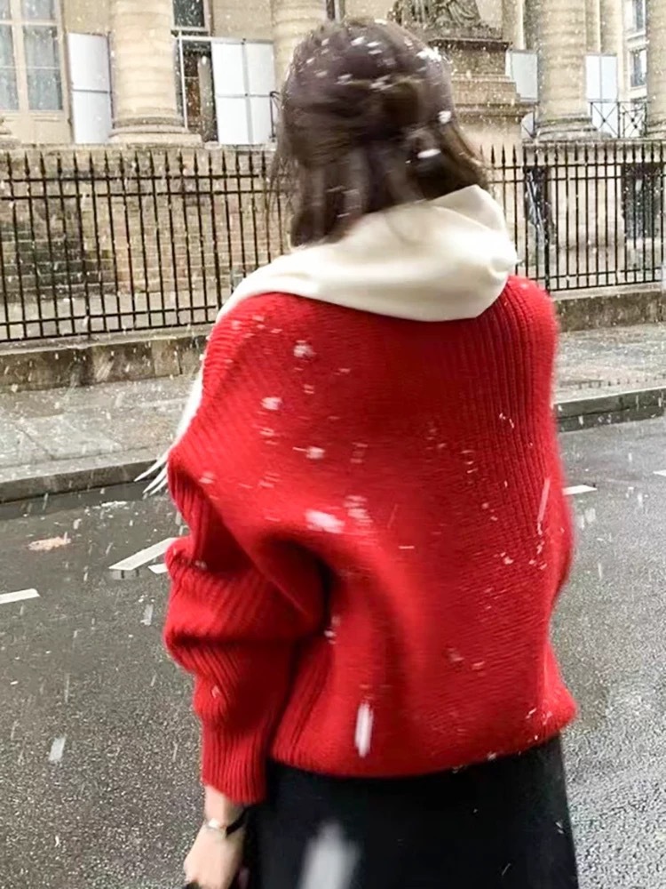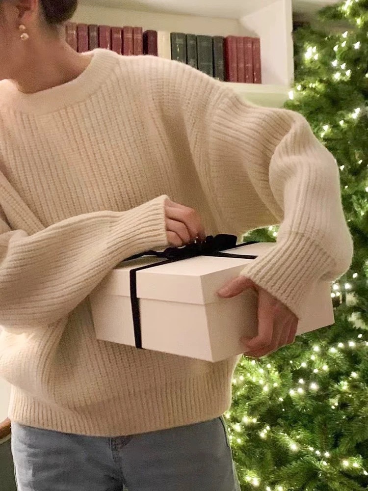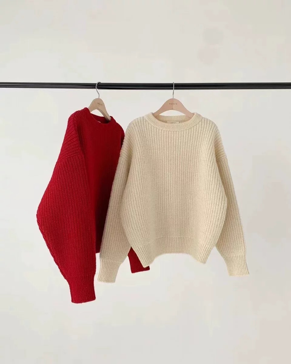 韩国东大门新款羊毛衫ounce时尚宽松百搭圆领白色红色毛衣女秋冬