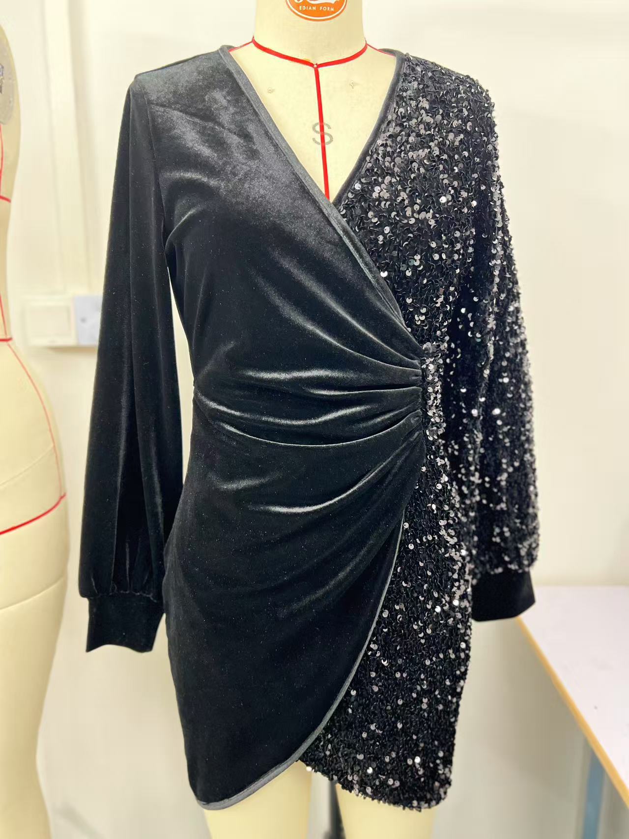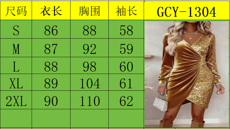 2025欧美跨境亚马逊独立站新款性感时尚V领亮片丝绒修身连衣裙
