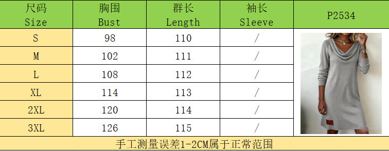 欧美跨境亚马逊独立站新款秋冬女装长袖堆堆领舒适休闲修身连衣裙
