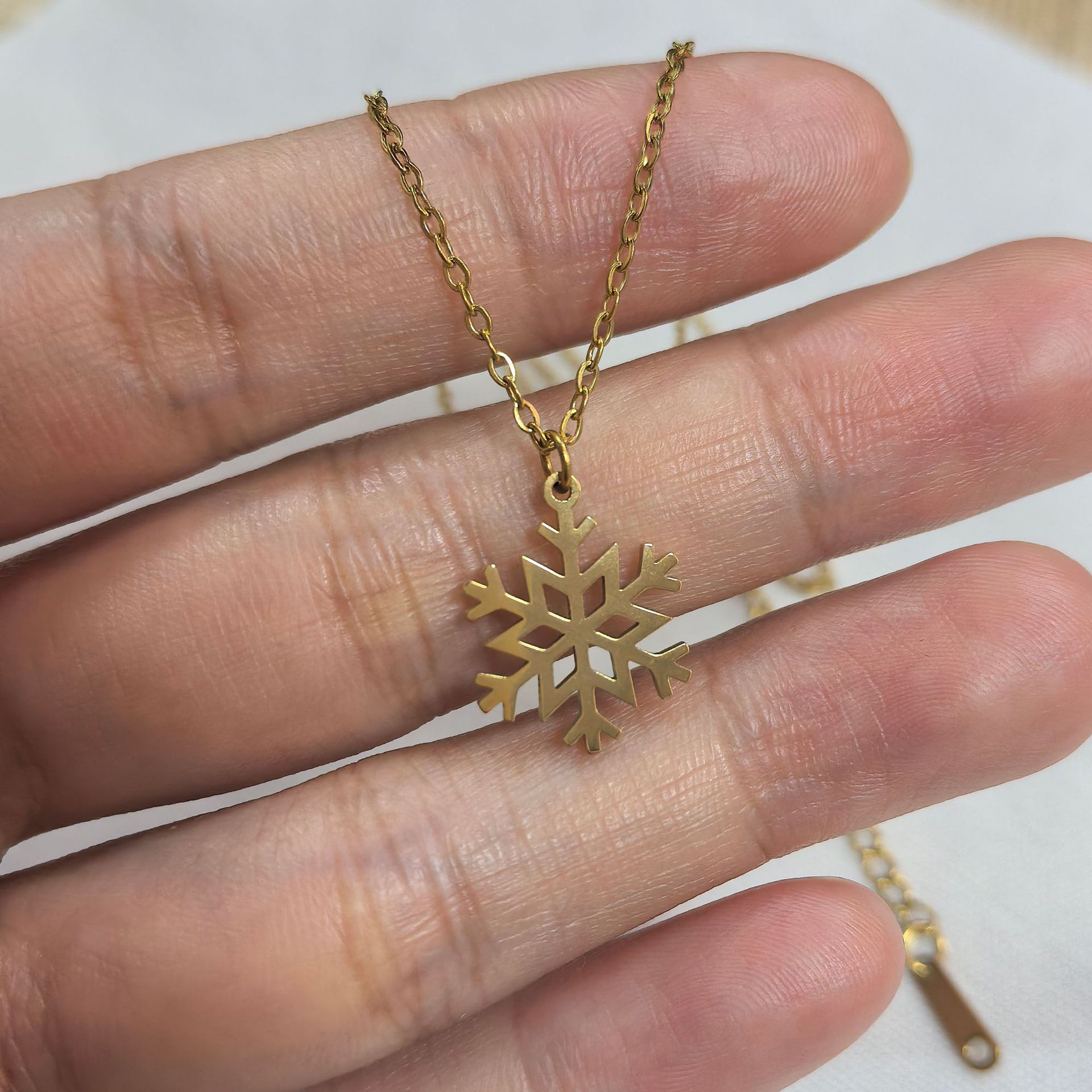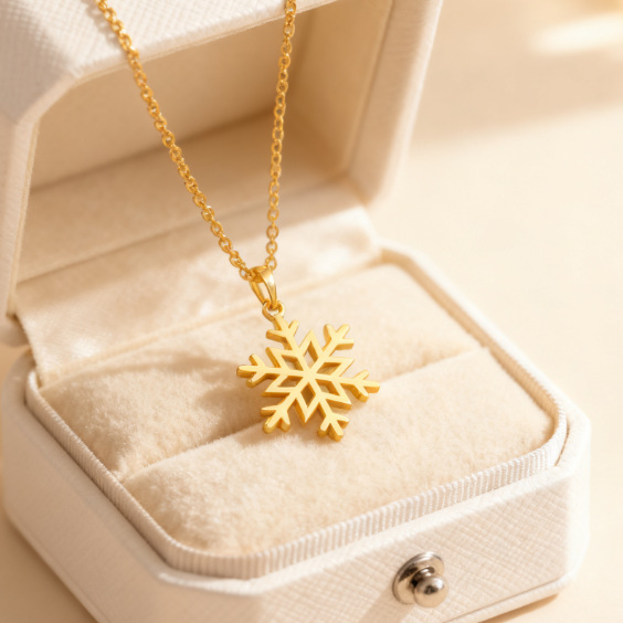 欧美畅销雪花项链跨境小众男女时尚百搭不锈钢镀18K金镂空锁骨链