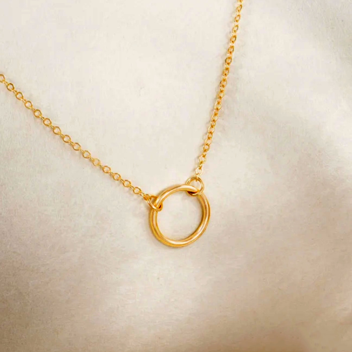 欧美风时尚不锈钢项链简约圆形素圈吊坠跨境百搭男女锁骨链饰品