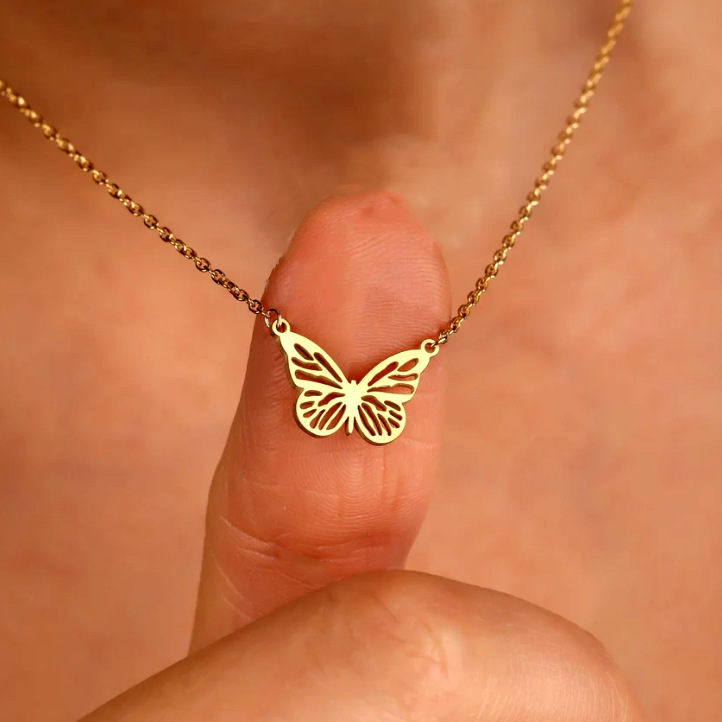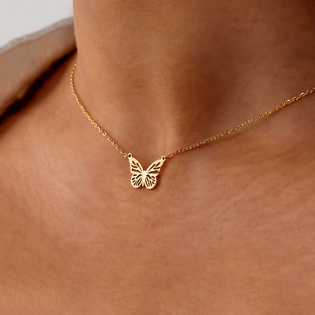亚马逊镂空蝴蝶吊坠项链跨境ins风男女时尚百搭不锈钢镀金锁骨链