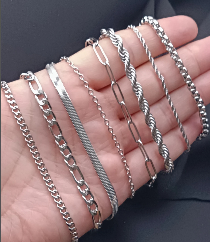 欧美畅销不锈钢4mm锁骨链古巴素链男女无吊坠裸链半成品饰品配件