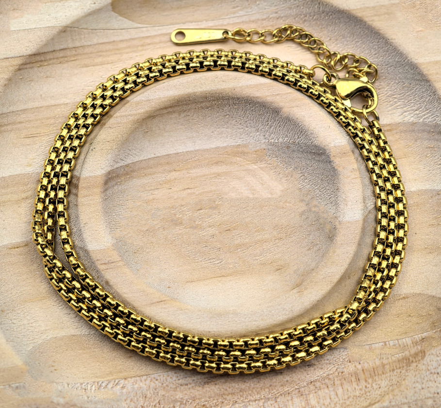跨境畅销不锈钢镀18K金素链方珍珠链无吊坠简约百搭男女锁骨裸链