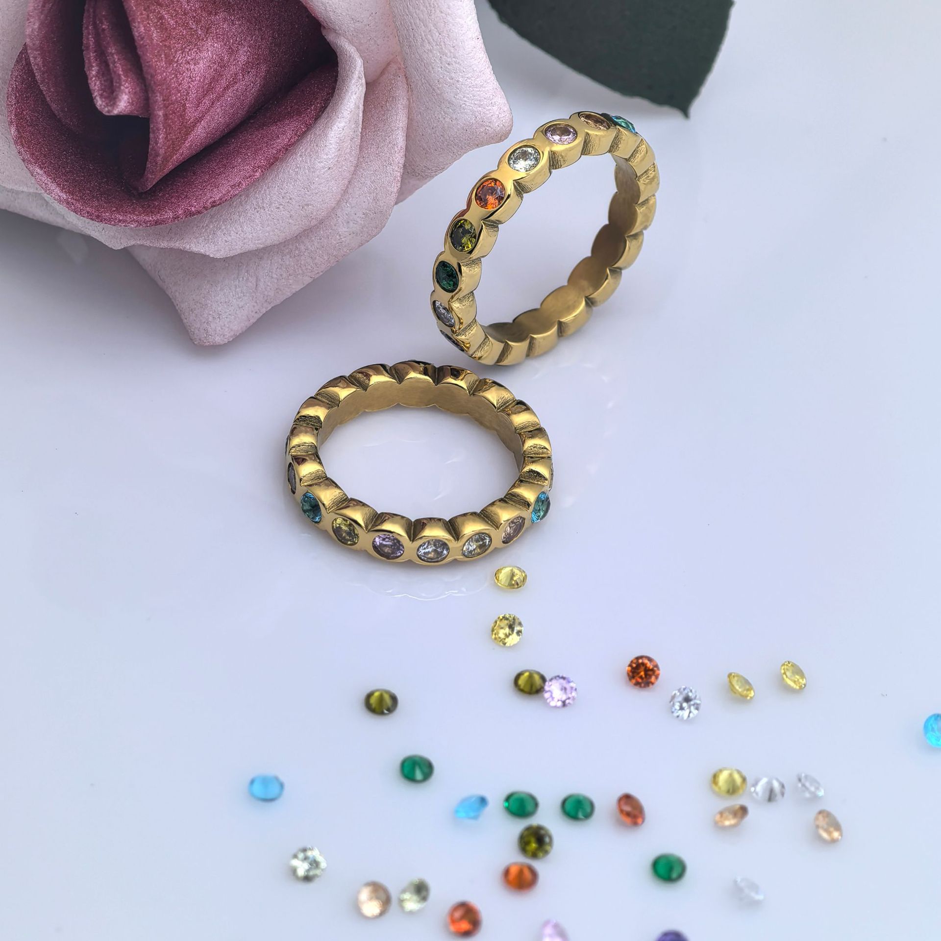 亚马逊畅销不锈钢戒指镀金泡泡高级感百搭镶锆石十二月生辰石指环