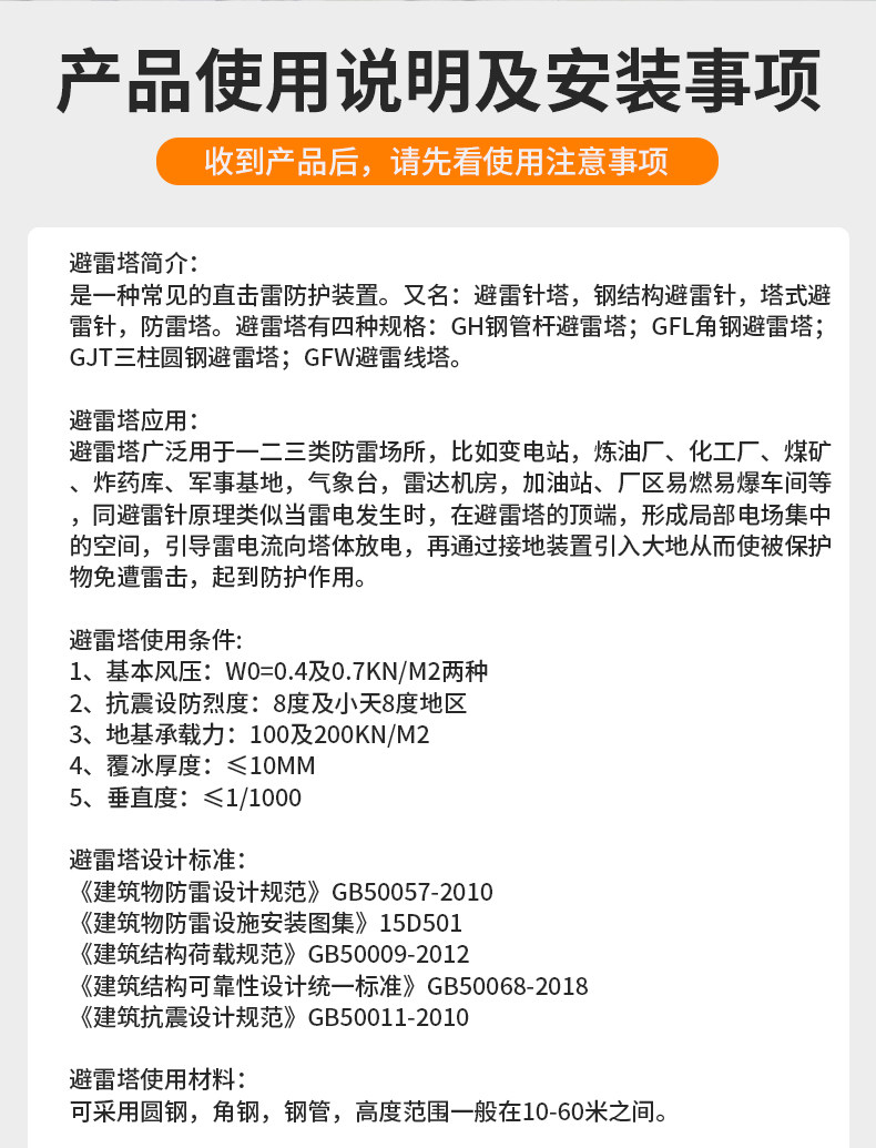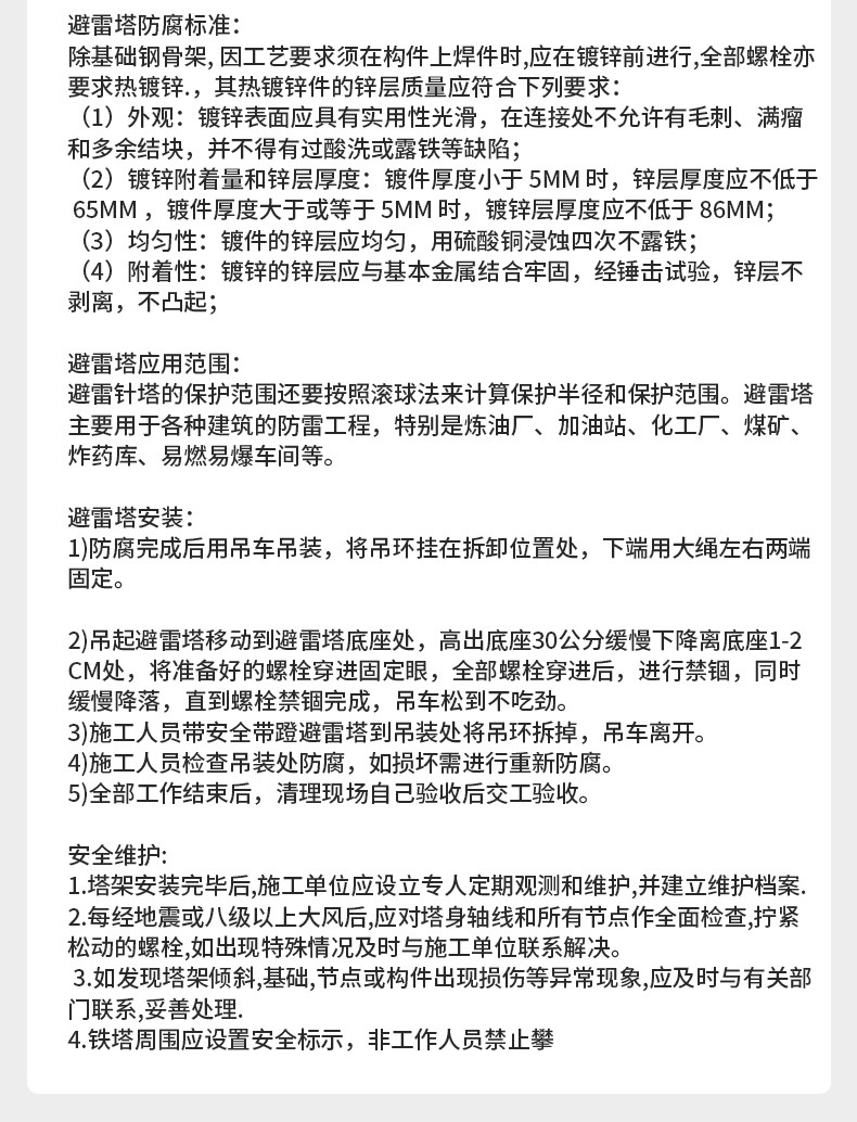 - 规格:避雷塔