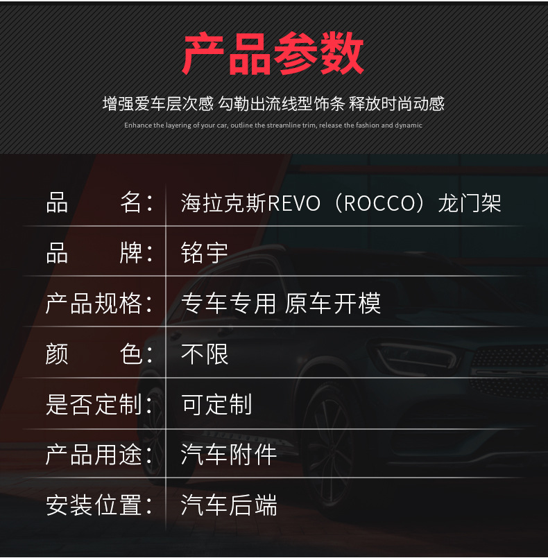 海拉克斯REVO(ROCCO)汽车龙门架塑料ABS防滚架防护栏龙门架装饰
